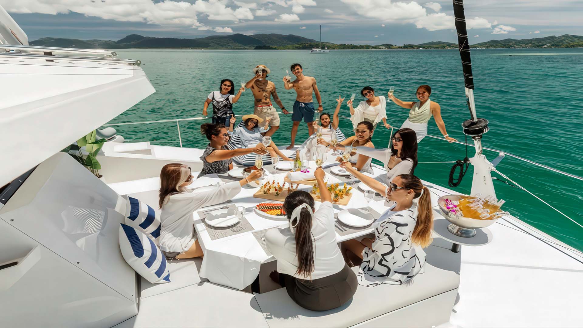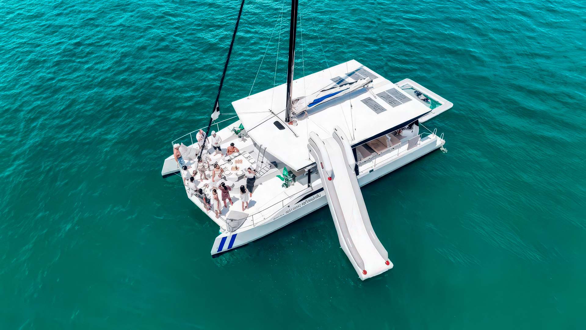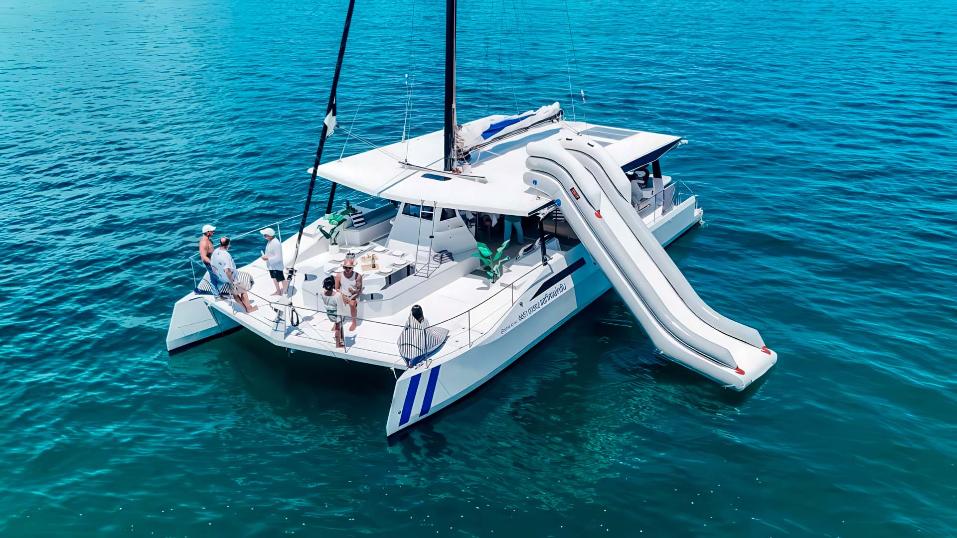 Совершенно новый катамаран Satisfaction 55ft только что сошёл с верфи, и он создан для одной простой цели, превратить ваш день в море в ту самую историю, которую вы будете пересказывать друзьям следующие несколько лет. Сорок человек, бесконечное море, мощная аудио система Party Soundsystem, которую слышно на соседнем острове. Надувной бассейн, водная горка с хардтопа катамарана и закаты, которые заставят вас забыть про фильтры в соц. сетях, потому что реальность выглядит лучше любой обработки.