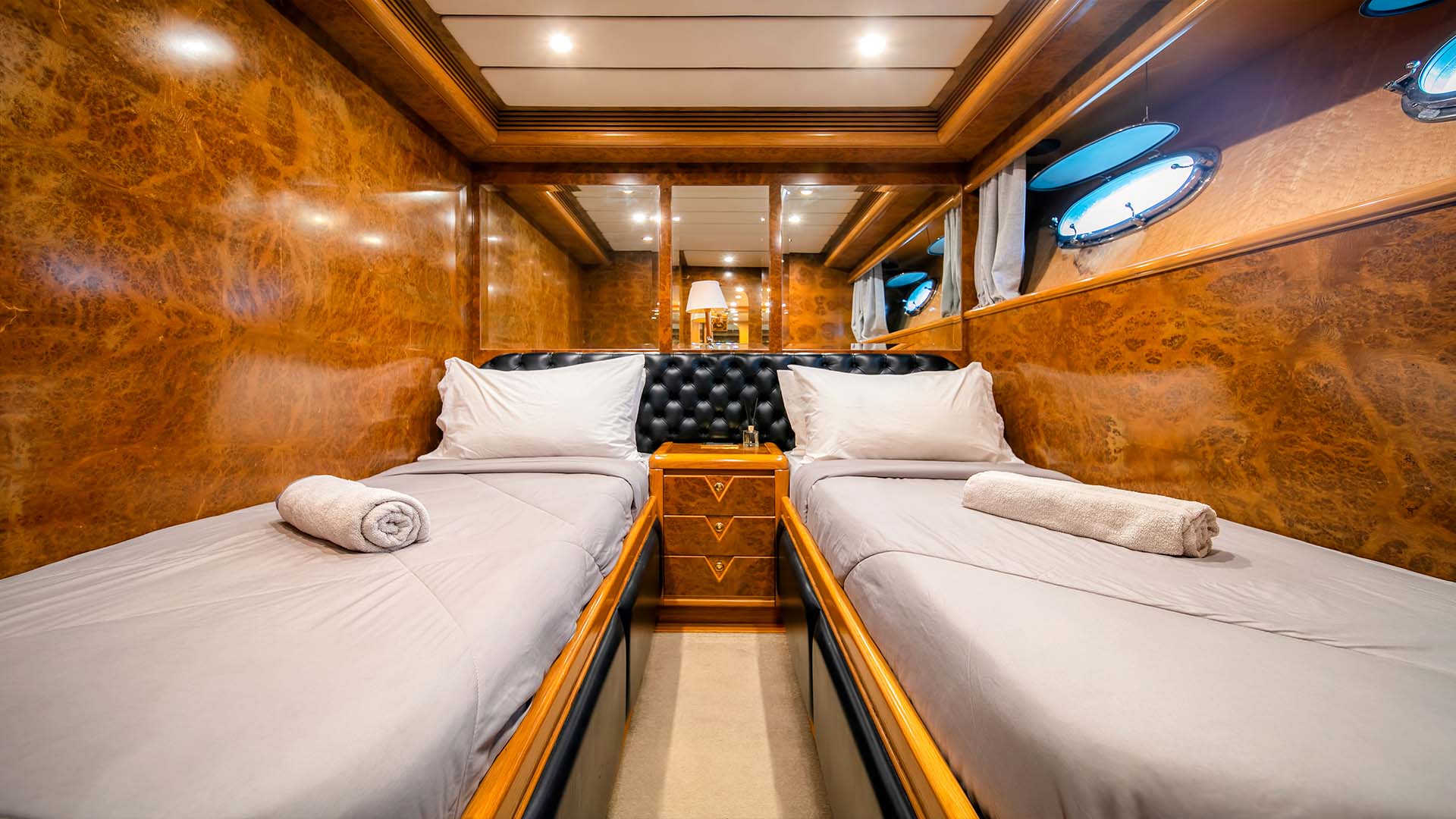 Эта яхта имеет длину 27 метров и ширину 6 метров, что позволяет разместить до 30 при дневной аренде и 8 гостей в четырех каютах с ночёвкой. Каюты оборудованы кондиционерами и современными удобствами, что обеспечивает максимальный комфорт во время плавания.