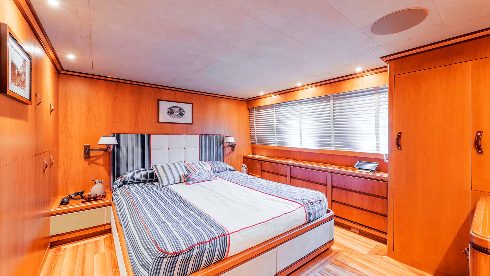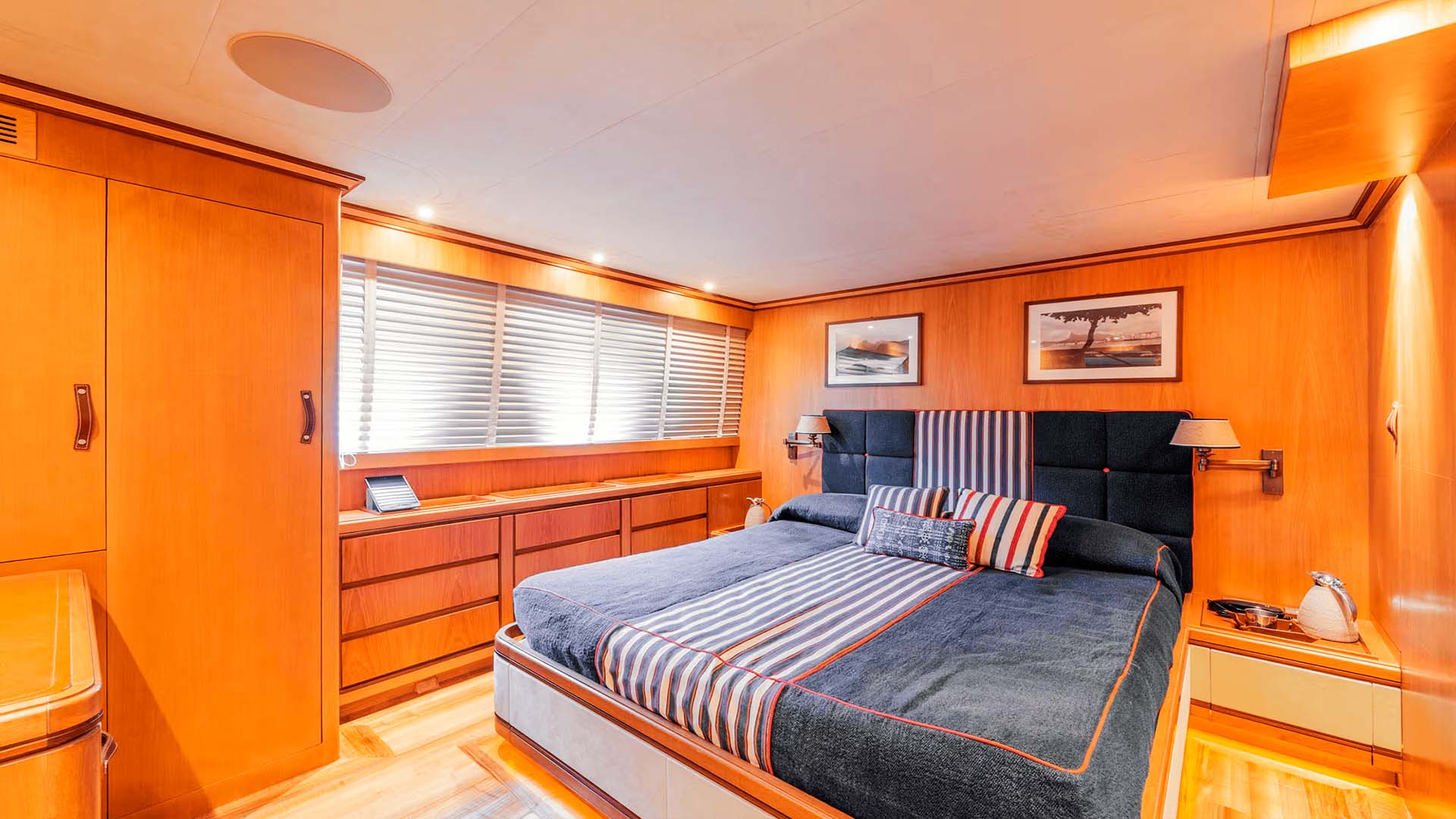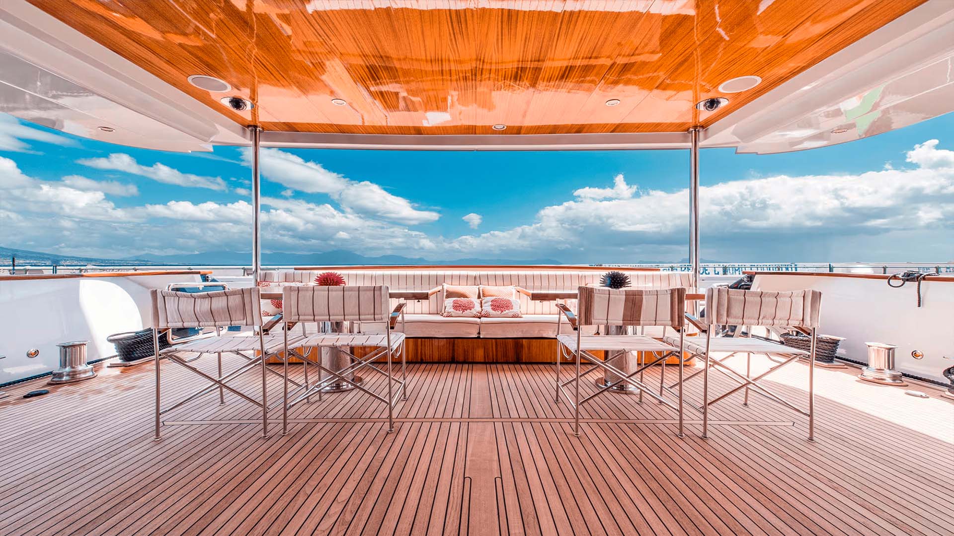 На борту — 5 основных кают: 3 двойные, 2 твин и одна односпальная. Да, здесь свободно разместятся до 10 гостей (или 11, если кто-то захочет уединения). Интерьеры — это баланс между природной теплотой и современным комфортом. Никакого холодного люкса — только уют, вкус и внимание к деталям. Но яхта Castagnola 125 берёт не только дизайном. У неё три палубы, включая потрясающую верхнюю террасу площадью 65 м² — здесь завтраки у горизонта превращаются в ритуал, а закаты — в немое кино с лучшим обзором. Wi-Fi, стабилизаторы и кондиционирование — разумеется. А ещё — полноценный тренажёрный зал, если рука всё же потянется к штанге даже в отпуске.