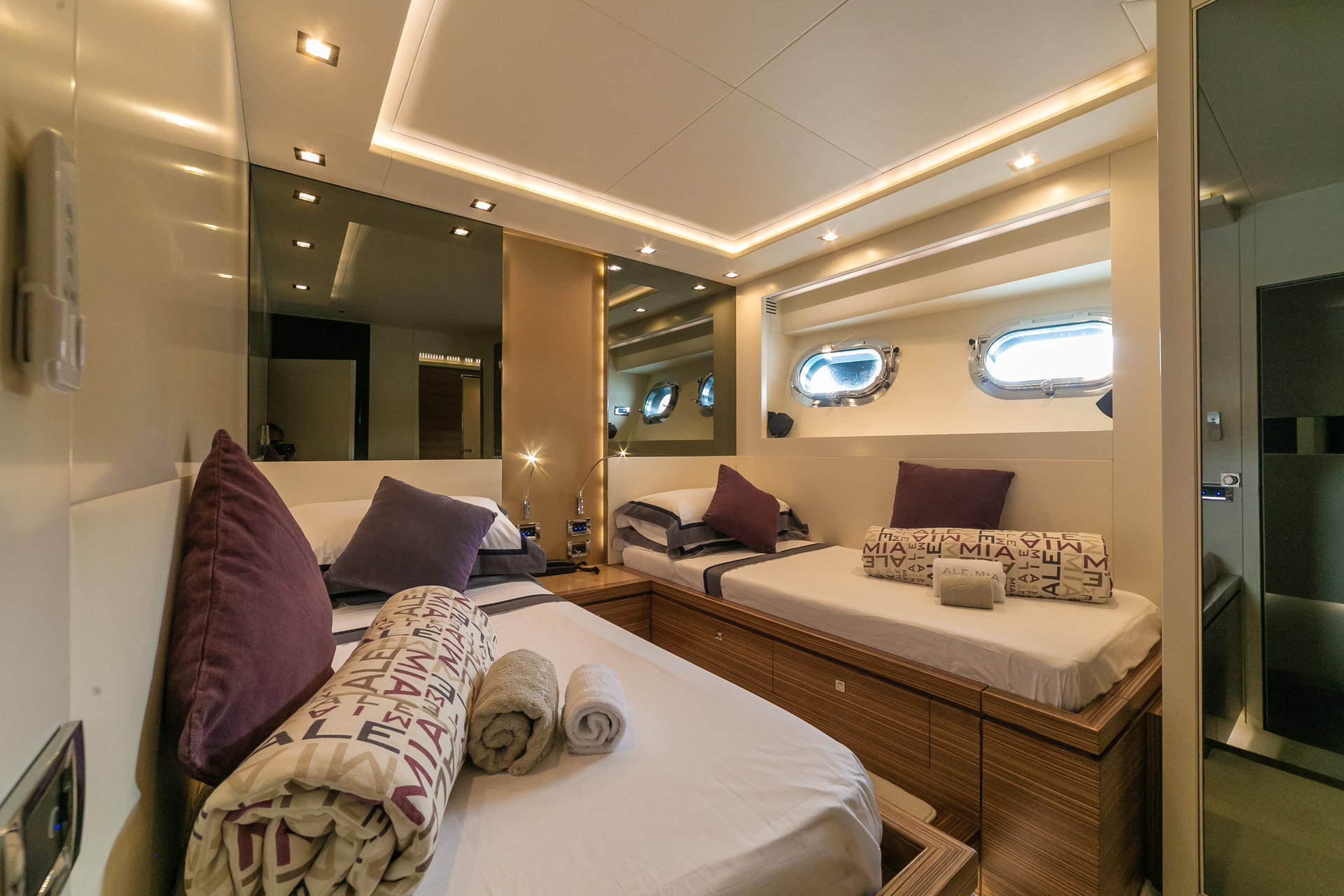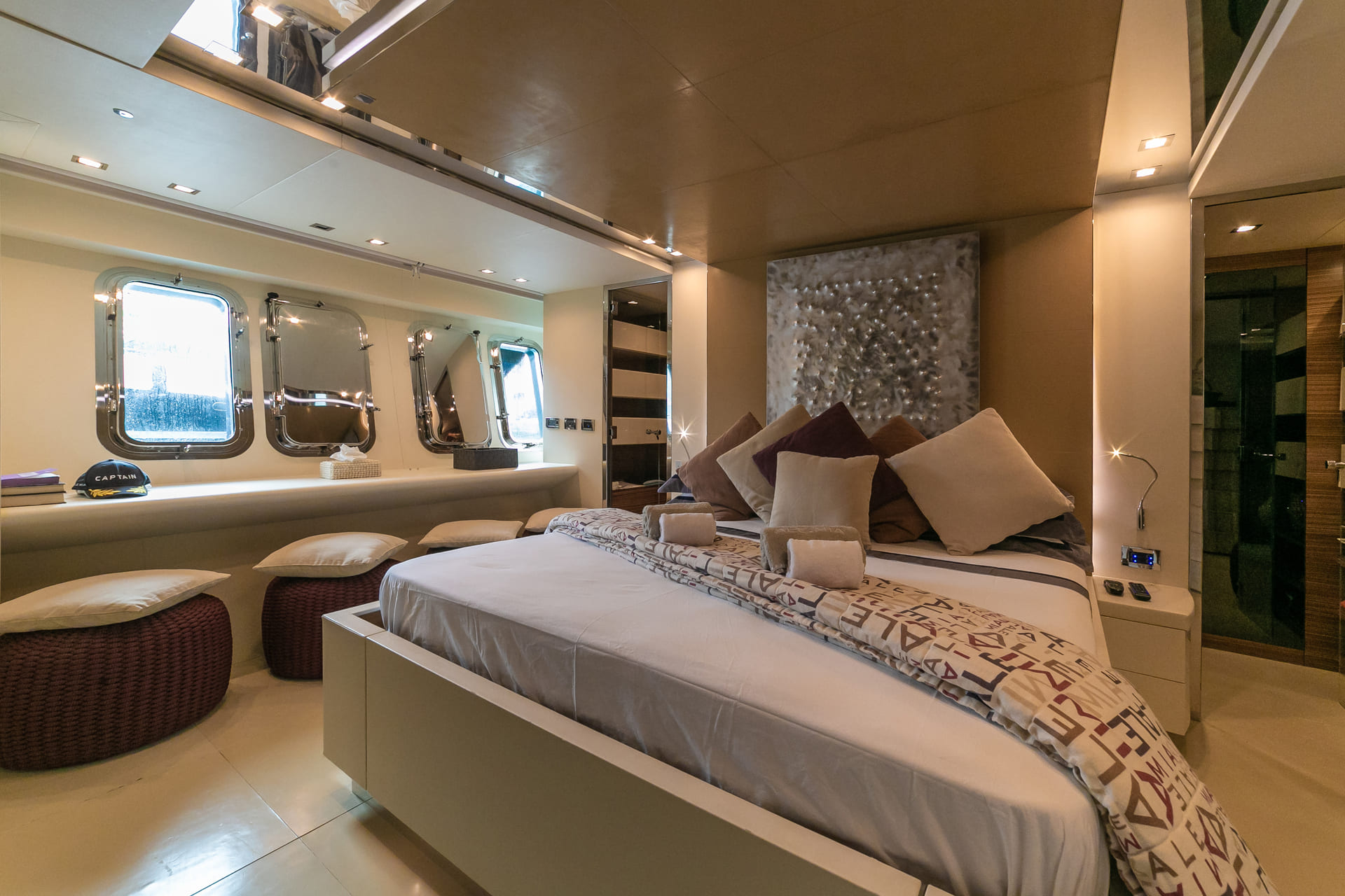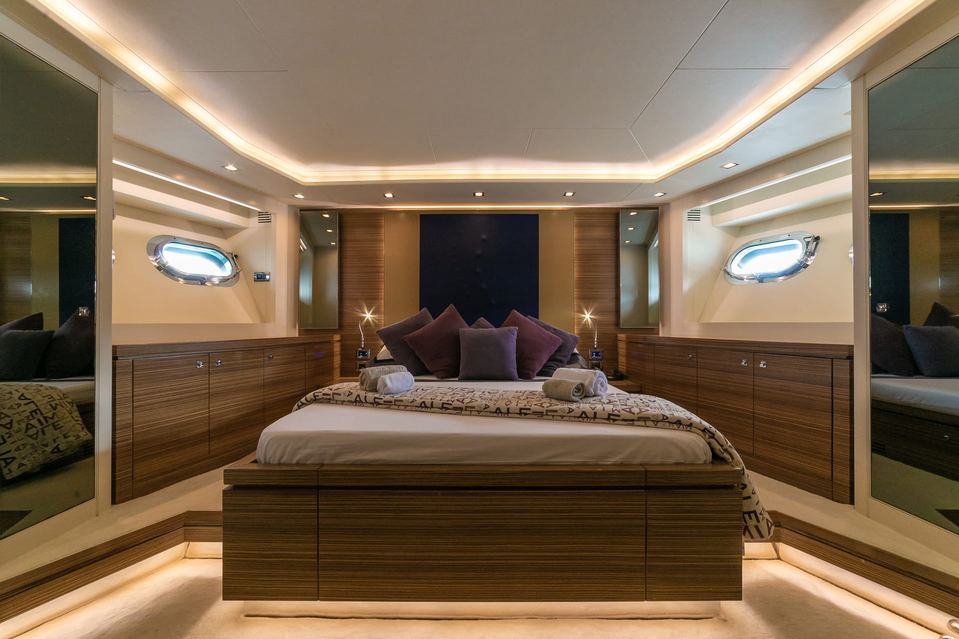 Внутри — пять кают, каждая с индивидуальным дизайном, кондиционером и всем необходимым для комфортного отдыха. Идеально для семьи или компании друзей.