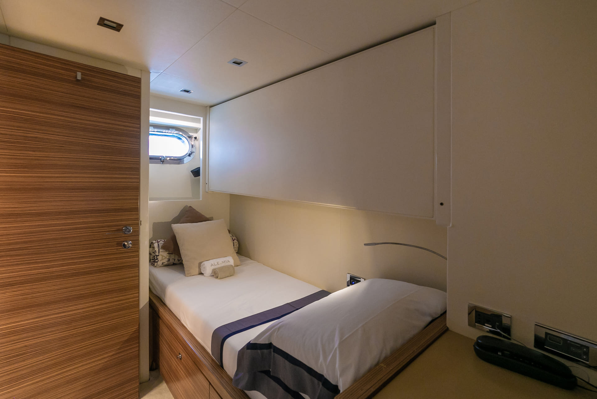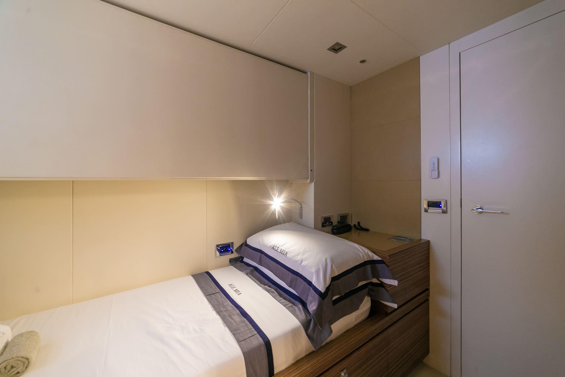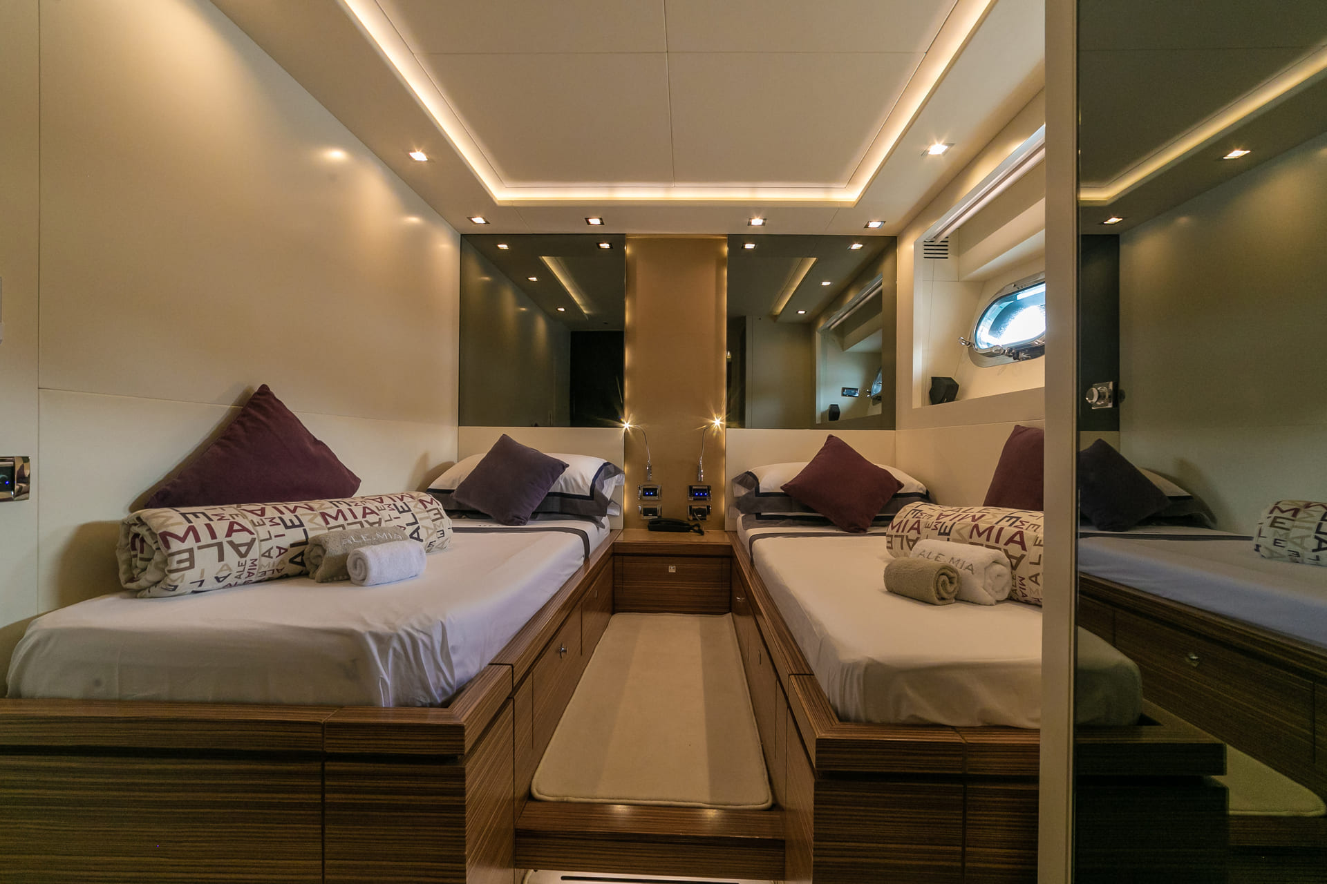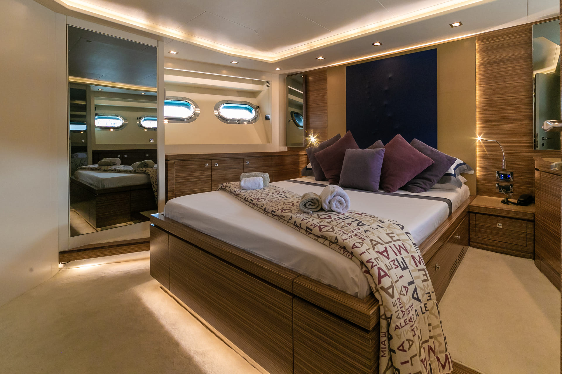 Внутри — пять кают, каждая с индивидуальным дизайном, кондиционером и всем необходимым для комфортного отдыха. Идеально для семьи или компании друзей.