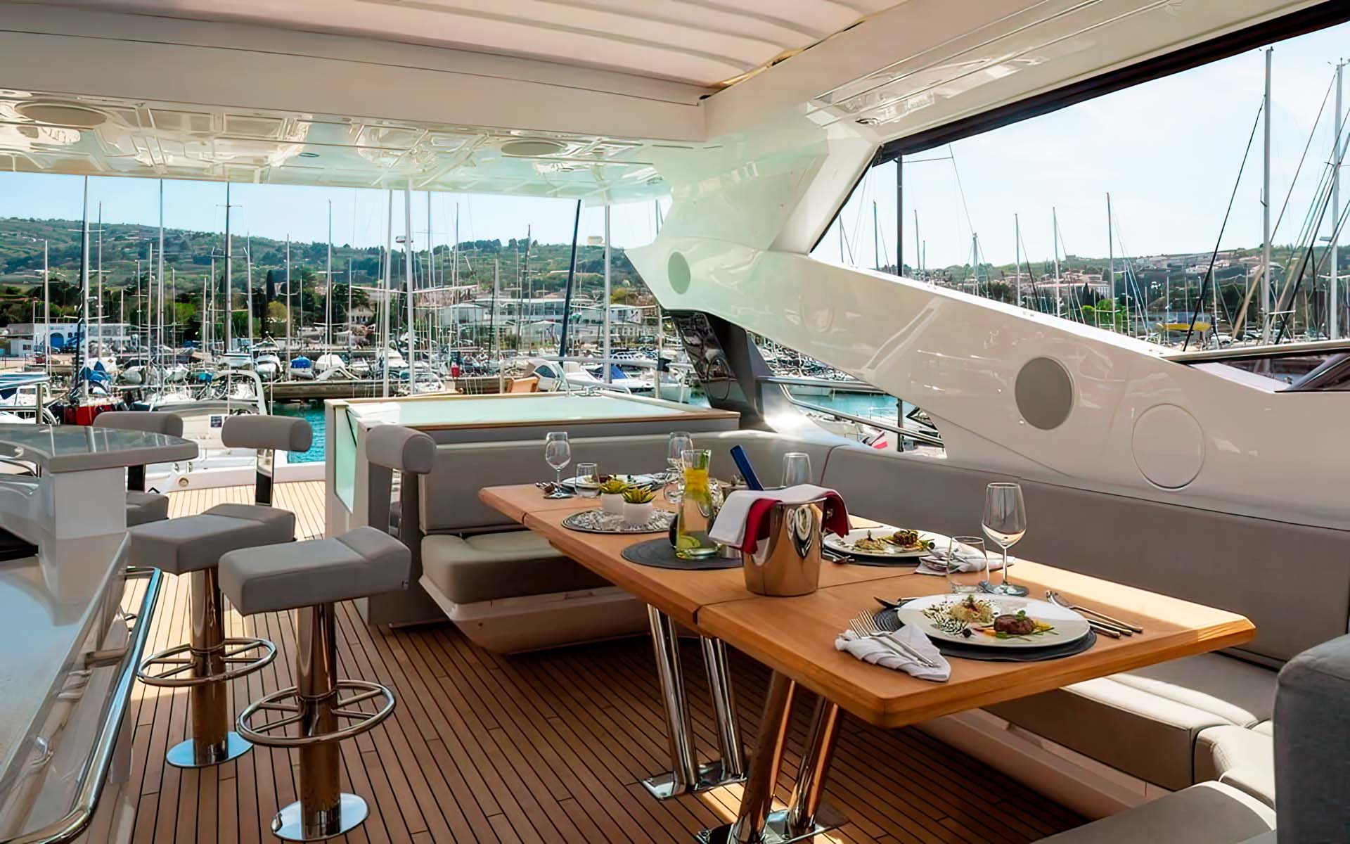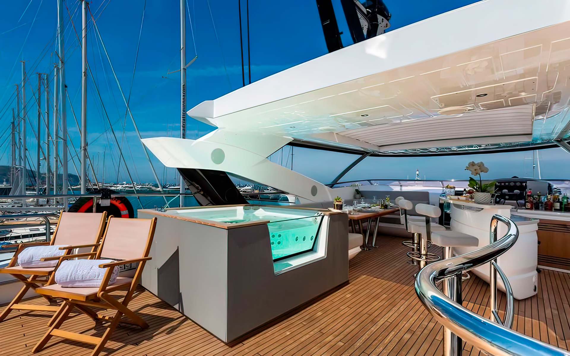 А теперь поднимитесь на флайбридж. Здесь, на верхней палубе, вас ждет джакузи с видом на бесконечность. Это не просто гидромассажная ванна, это ваш личный театр, где каждый вечер играют лучшие закаты Средиземноморья. Вечером включается особая магия: звезды отражаются в воде вокруг яхты, а вы сидите в теплых пузырьках джакузи с бокалом просекко в руке. В такие моменты понимаешь, вот оно, настоящее счастье. И оно не продается в магазинах, его можно только прожить.