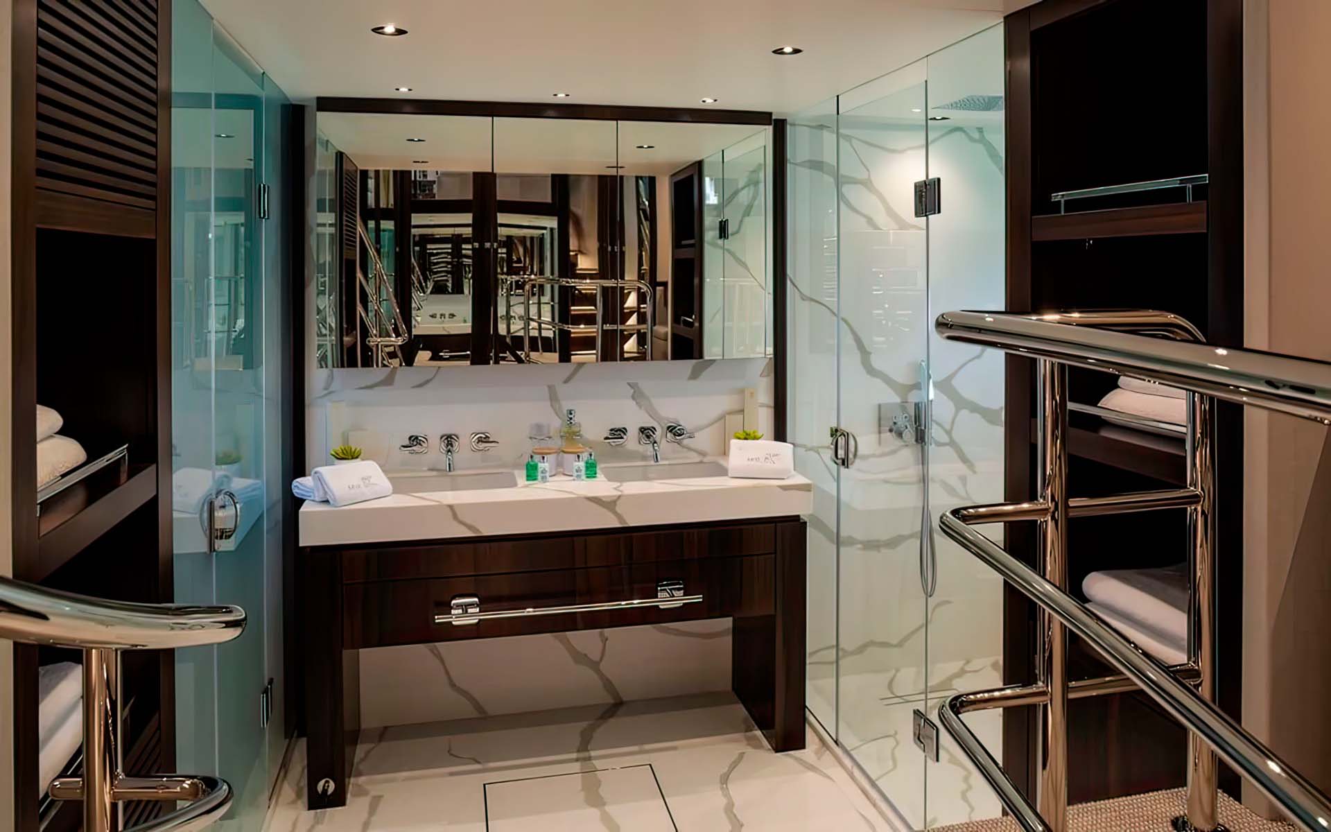 Забудьте о том, что вы знали об отельных номерах. На борту Sunseeker 95 вас ждут пять кают, каждая из которых, произведение дизайнерского искусства. Мастер-сьют на главной палубе? Представьте себе спальню с панорамными окнами, через которые морской горизонт плавно перетекает в интерьер. Просыпаться здесь, как оказаться внутри живой картины, которая меняется каждую секунду. Еще четыре каюты готовы принять ваших попутчиков, до десяти человек могут одновременно наслаждаться этим плавучим раем. А экипаж из четырех профессионалов, словно волшебники, которые предугадывают ваши желания еще до того, как вы сами их осознаете.