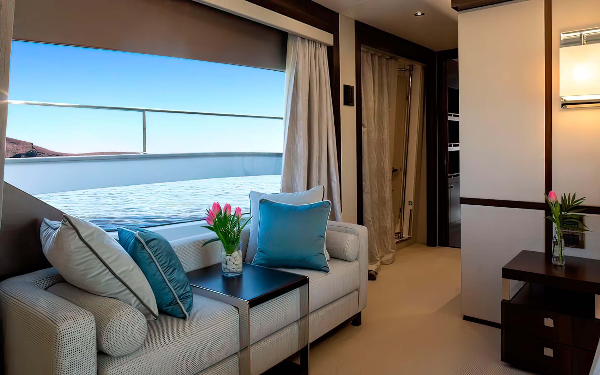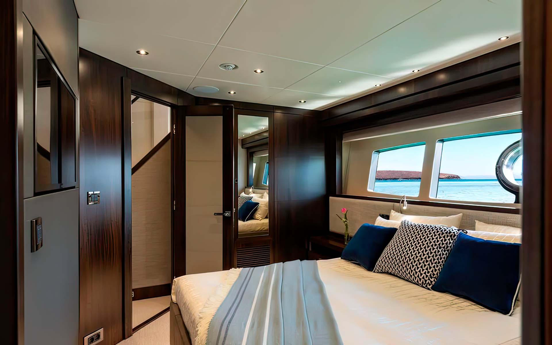Многие избегают яхт, боясь качки. С Sunseeker 95 забудьте об этом страхе навсегда. Современная система стабилизации Zero Speed работает как на ходу, так и на якоре, яхта буквально выравнивает себя, компенсируя любое волнение. Что это означает на практике? Ваш утренний кофе останется в чашке, а не на скатерти. Обед превратится в удовольствие, а не в испытание на выносливость. А ночью вы будете спать так сладко, словно находитесь в самом тихом отеле на суше.