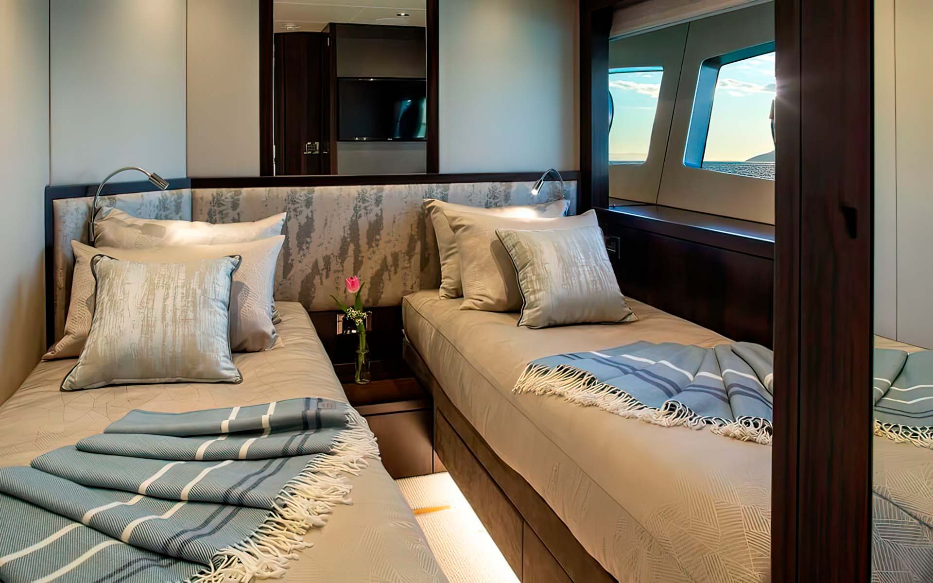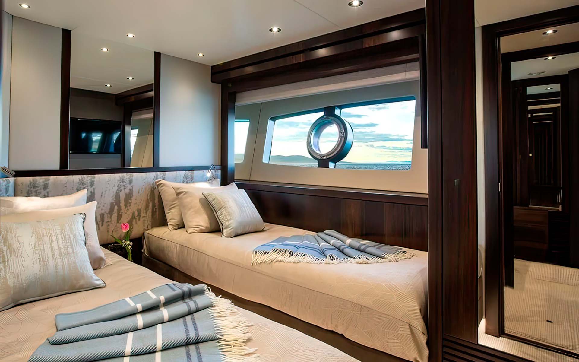 С системой стабилизации Zero Speed ночи на Sunseeker 95, это погружение в глубокий, целительный сон под мерное покачивание волн. Проснуться здесь, значит открыть глаза в новом месте, где за окном каюты плещется море, а не шумит городская улица.