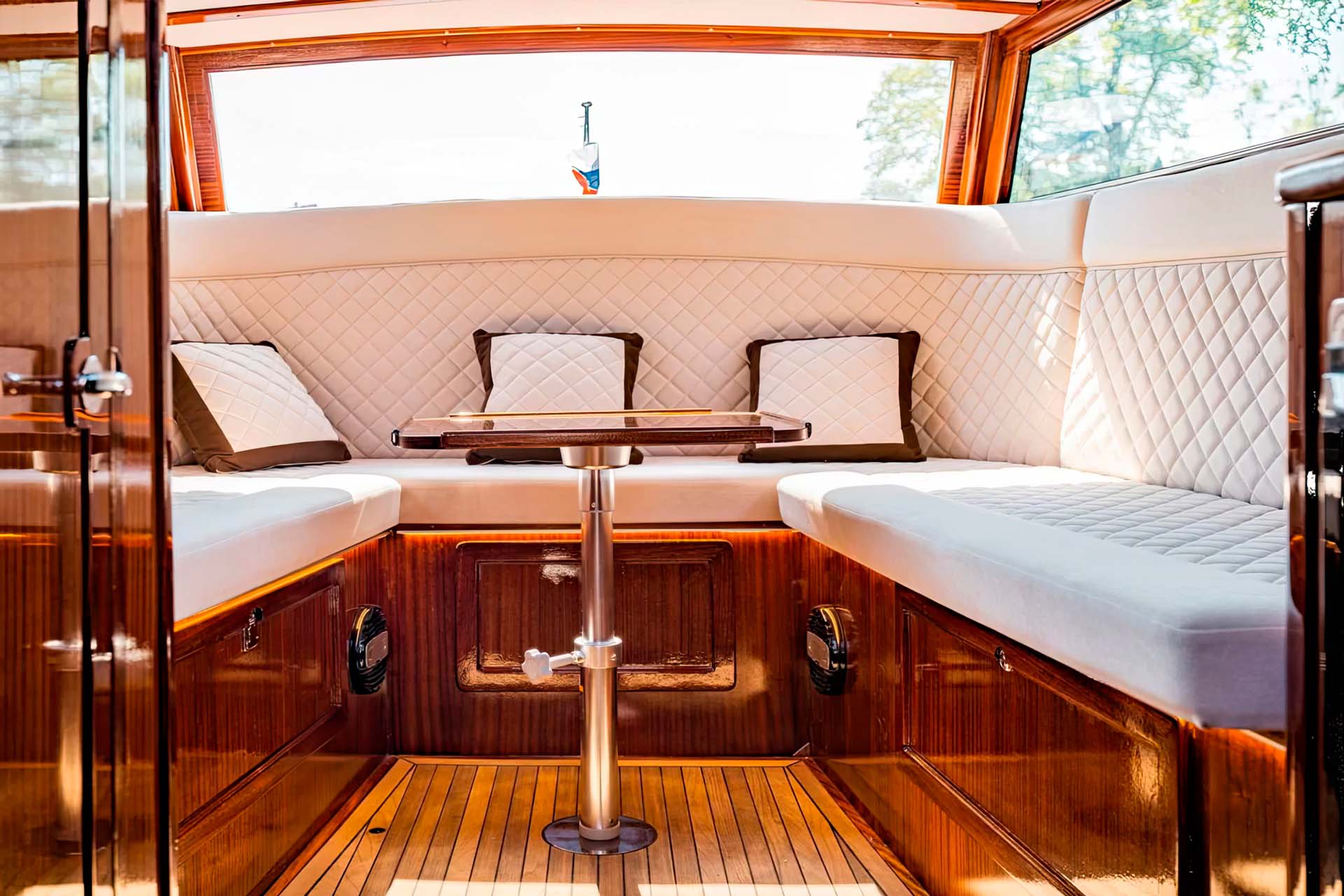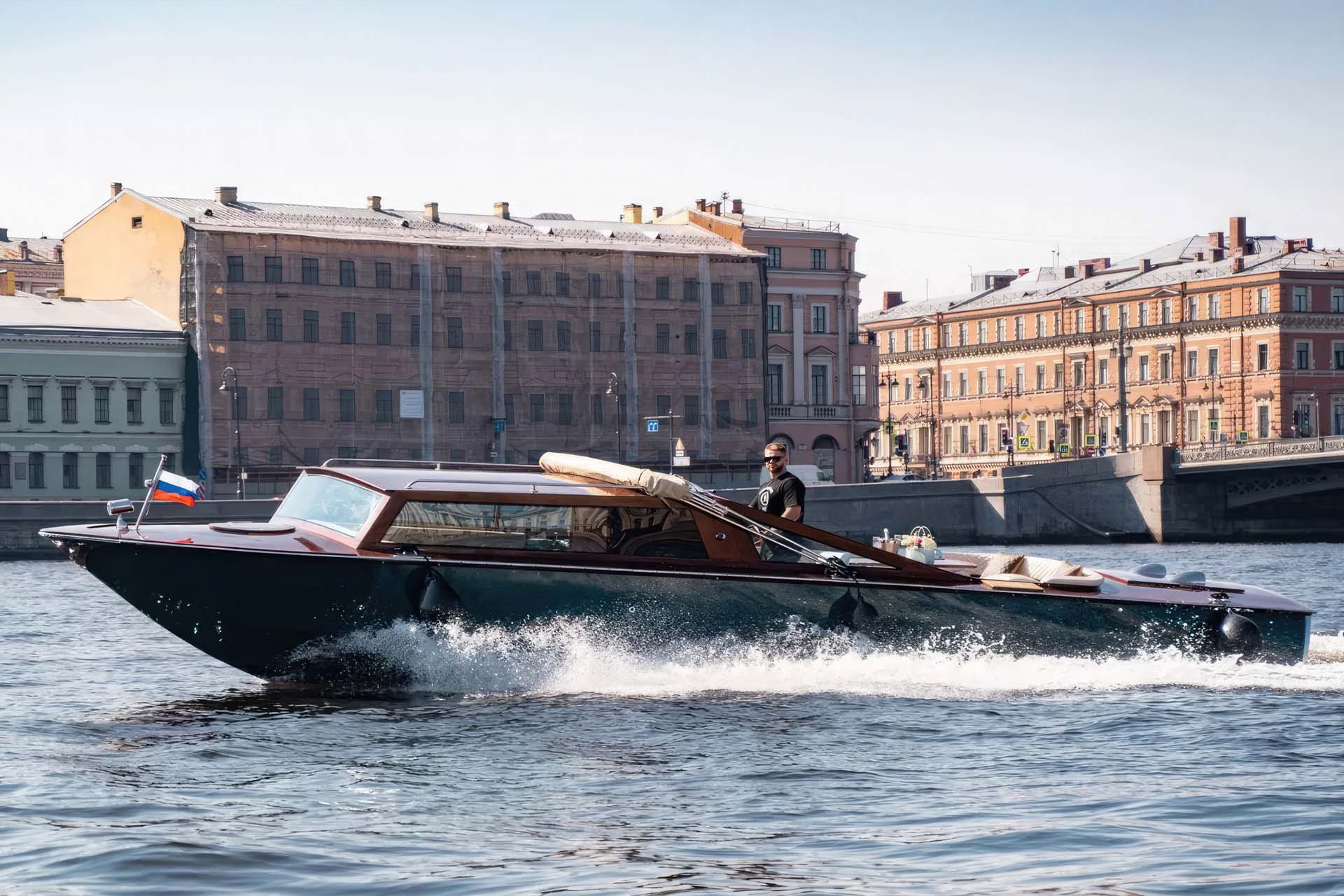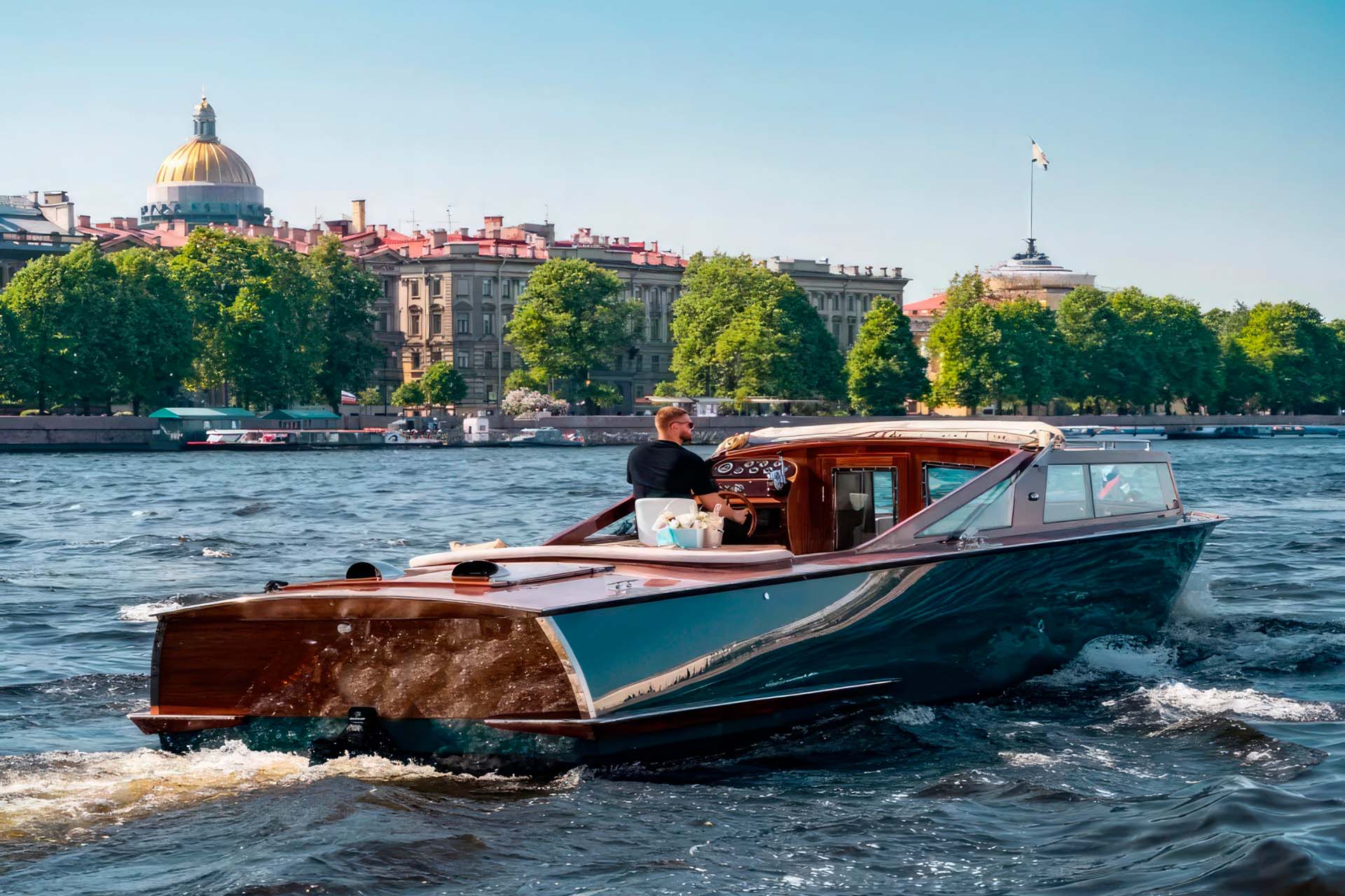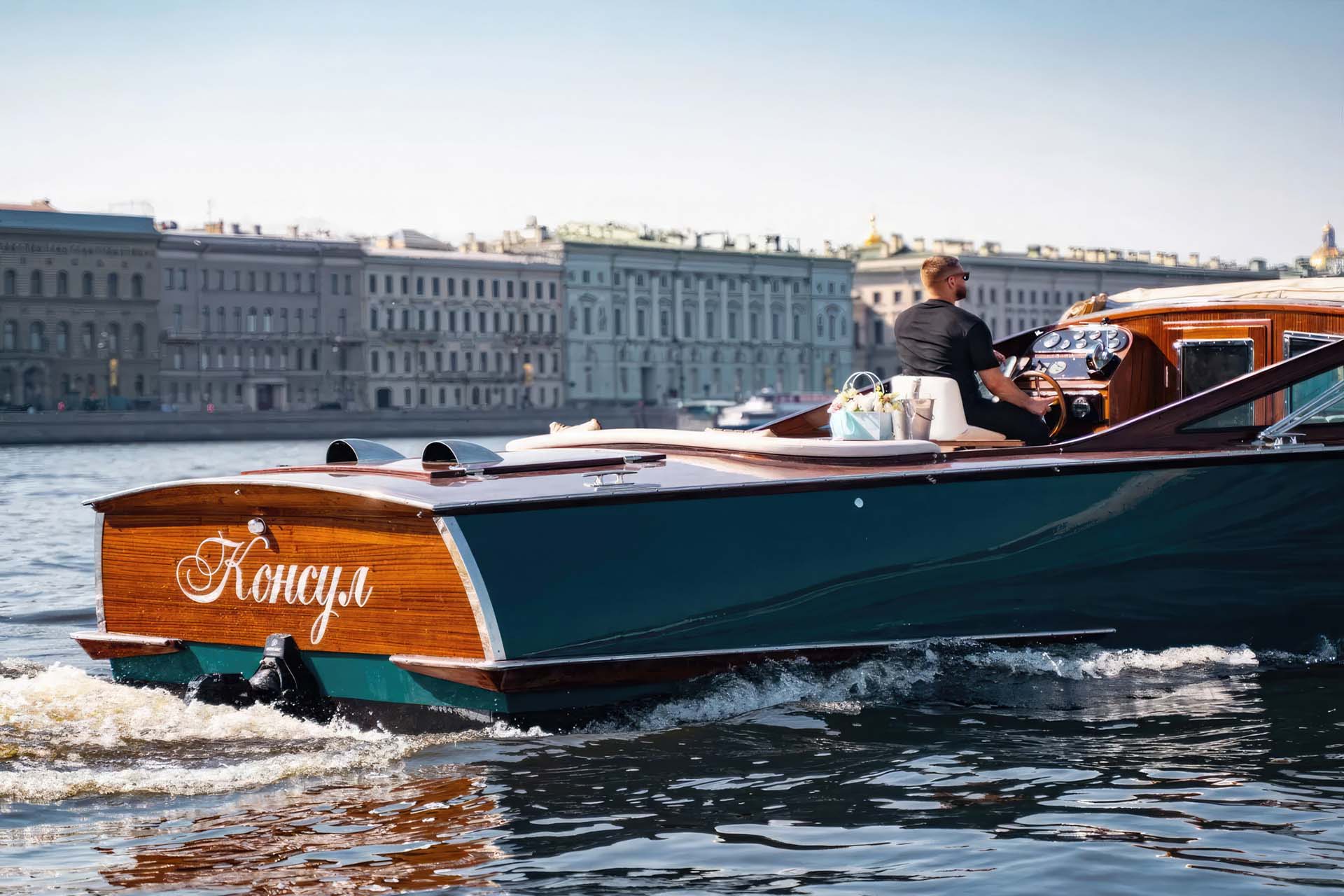 Катер Консул - это визуальный шедевр, выполненный с тонкой резьбой по дереву и украшенный элегантными деталями, которые передают сущность венецианского мастерства. Полированный деревянный корпус сверкает на солнце, а мягкие сиденья и стильный тент обеспечивают комфорт и тень. Будь то круиз по величественным дворцам Санкт-Петербурга или прогулка по тихим каналам, Консул выделяется своим вечным изяществом и изысканностью.