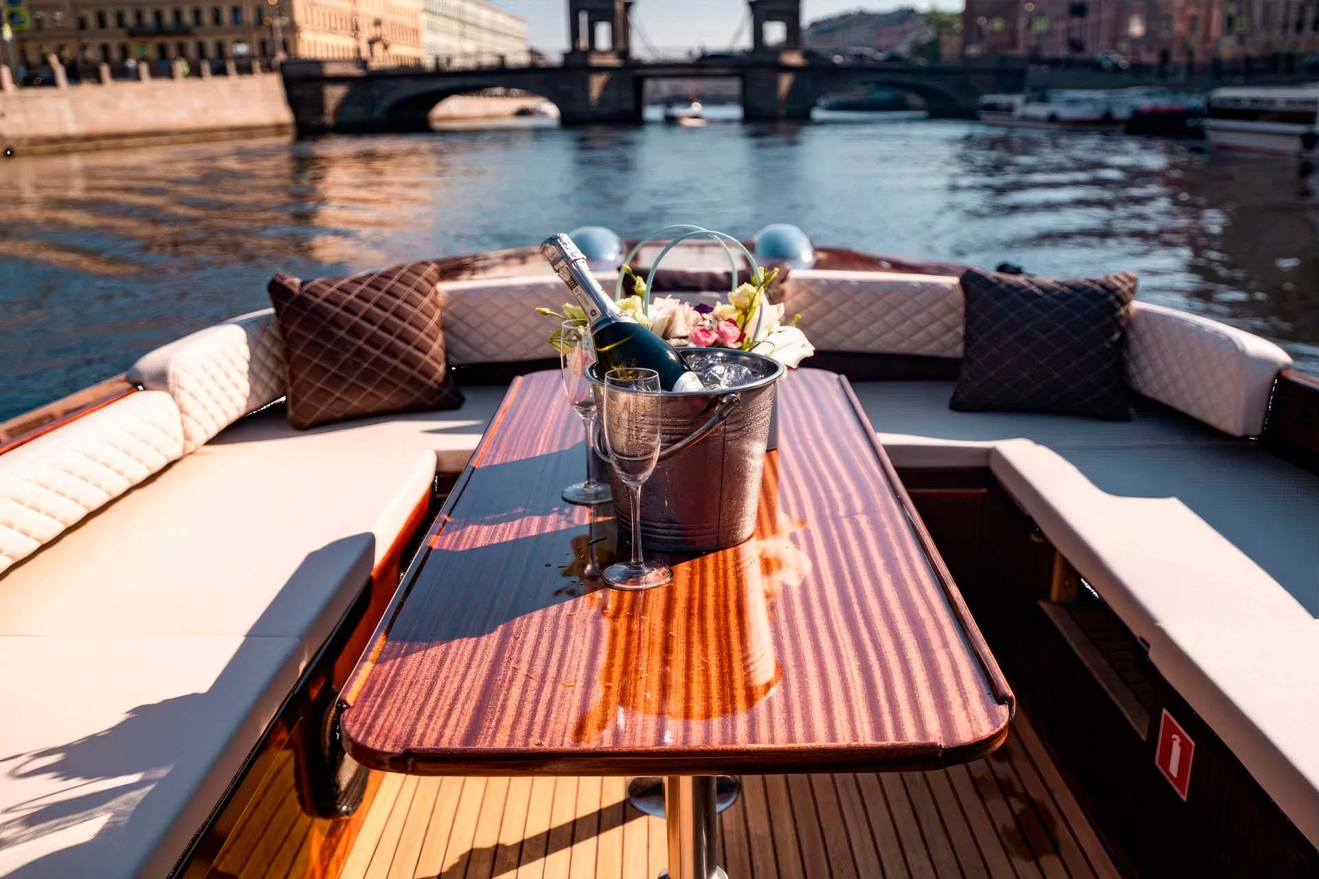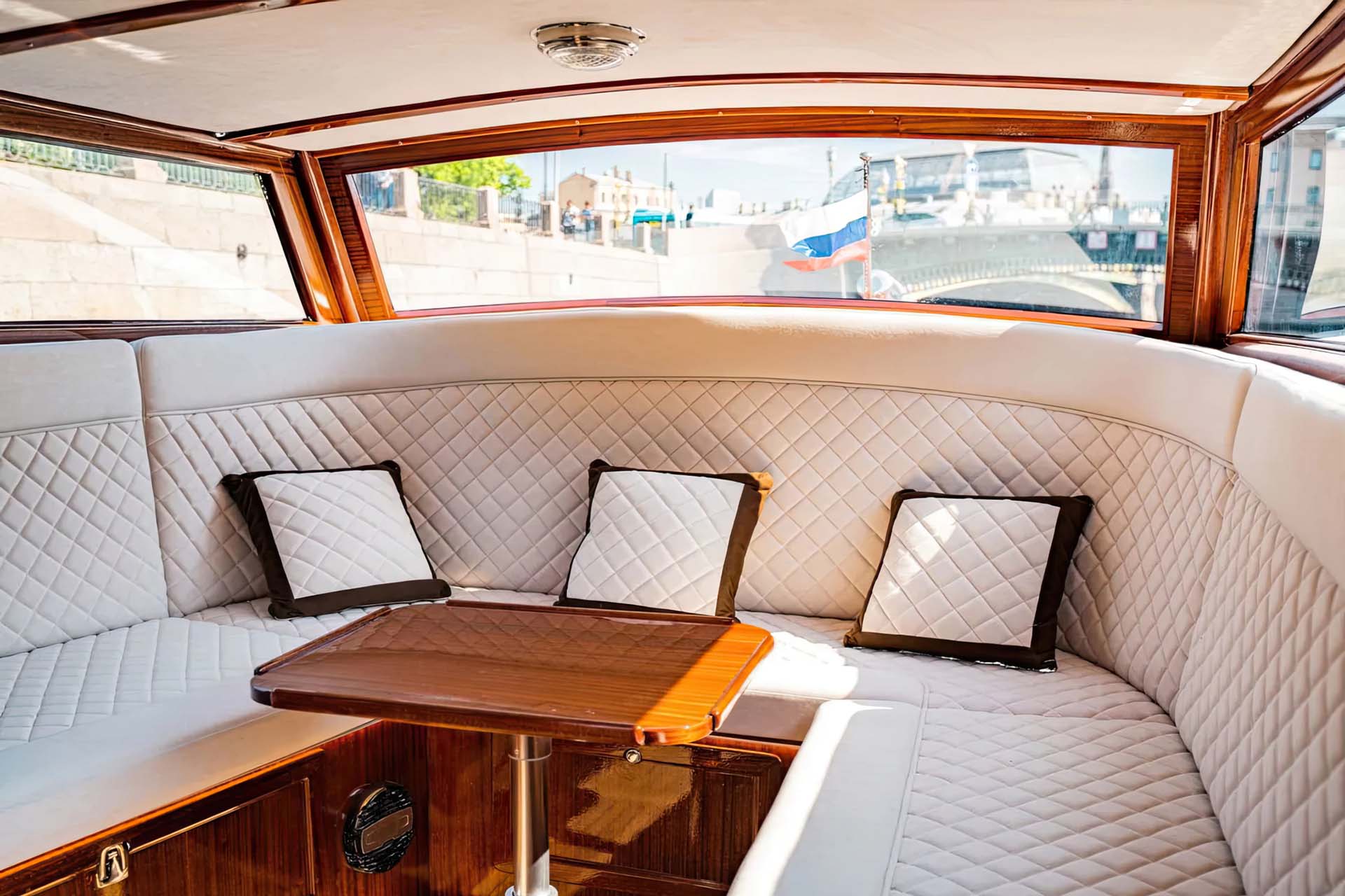 Аутентичный венецианский стиль: катер Консул - это больше, чем просто катер; это плавающий кусочек Венеции. Наслаждайтесь богатым наследием и искусством венецианского дизайна, проплывая по живописным водным путям Санкт-Петербурга.