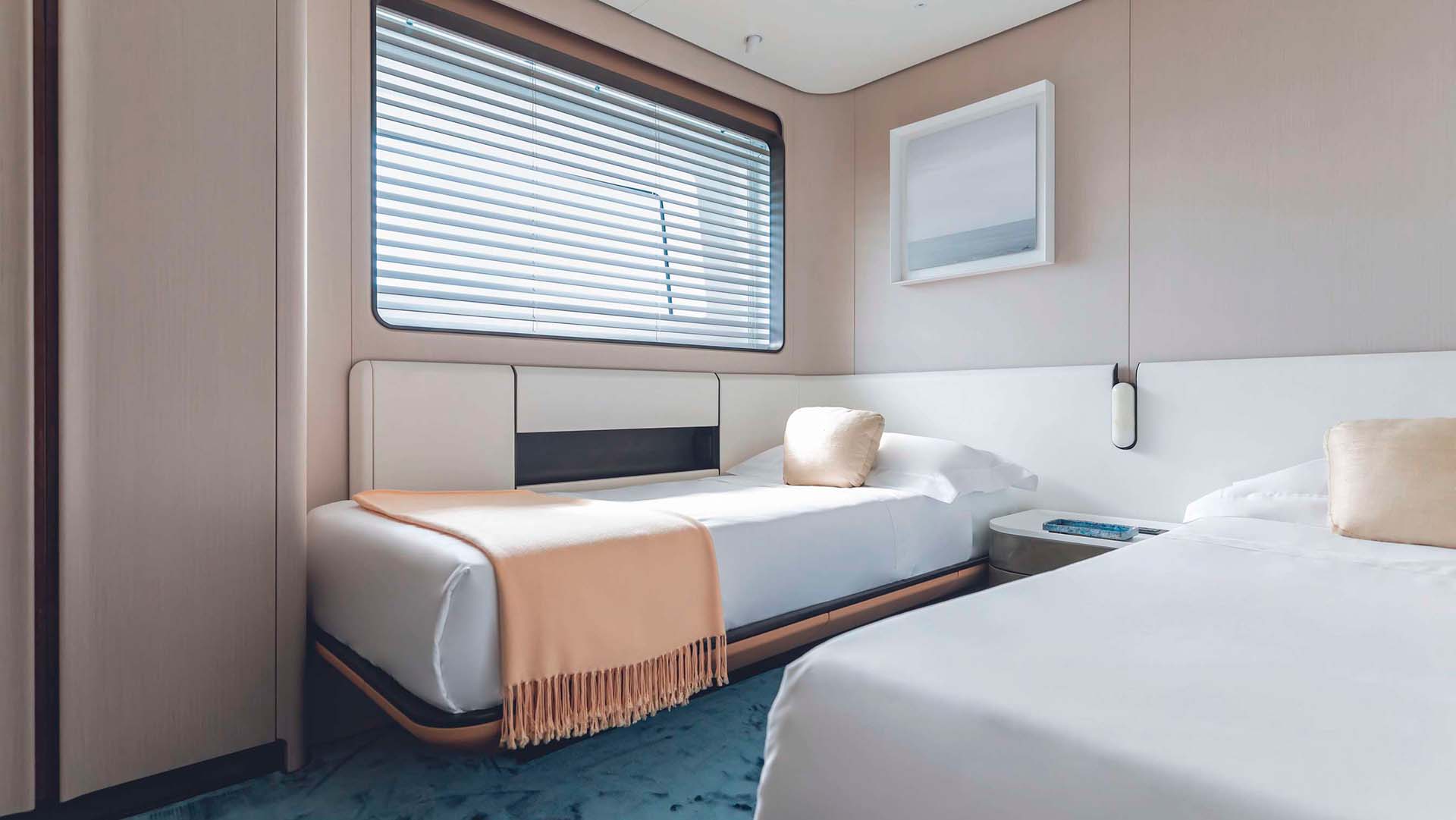 Каждая каюта – это отдельная история, со своим характером, но с единым знаменателем – бескомпромиссным комфортом. Отделка из редких пород дерева, мрамора и эксклюзивного текстиля создаёт атмосферу домашнего уюта в сочетании с корабельной эстетикой.
