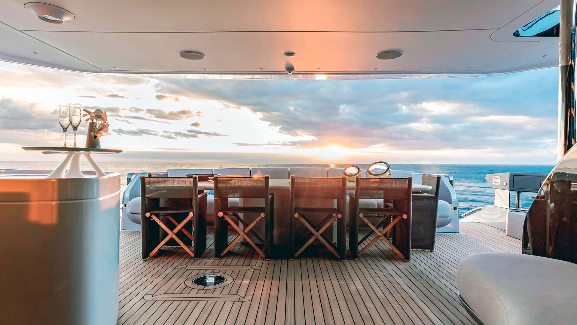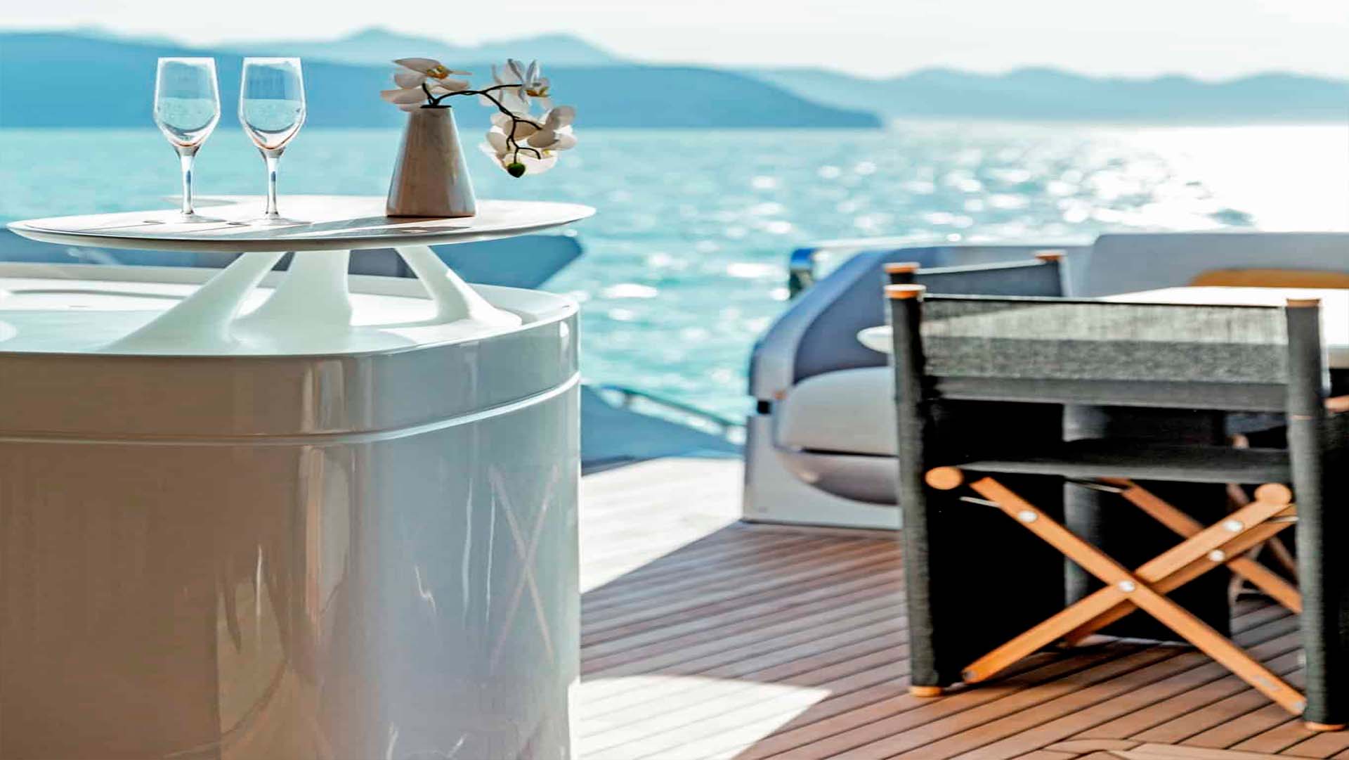 Флайбридж яхты – это грандиозное пространство для вечеринок под звёздами, с баром, обеденной зоной и лаунж-зоной для безмятежного отдыха.