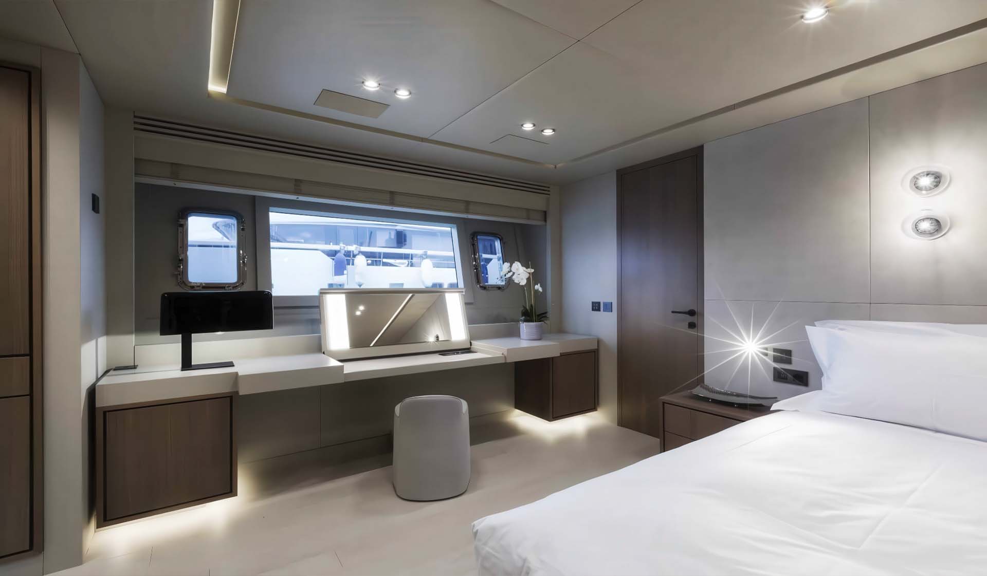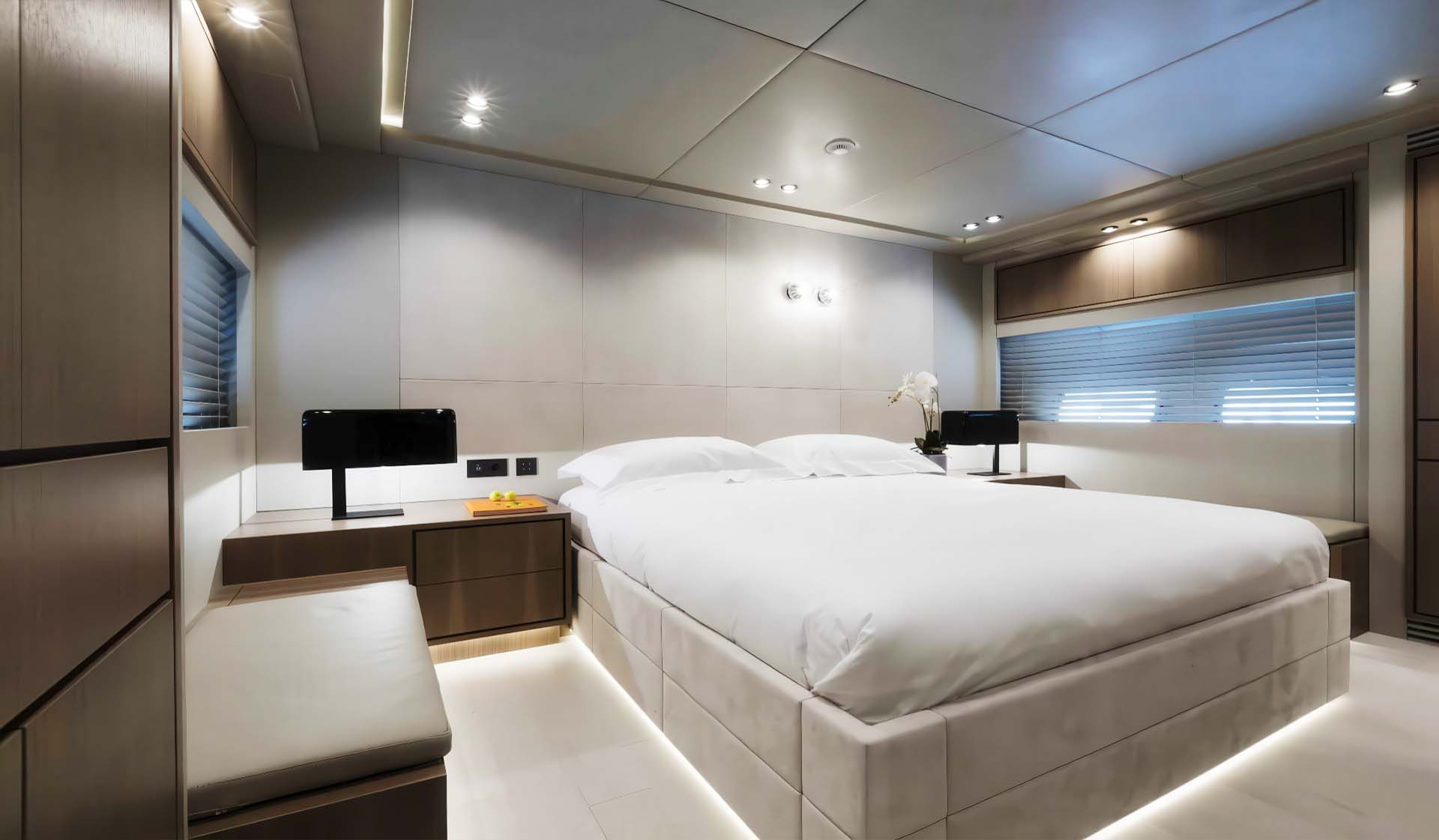Mangusta 110 может разместить до 8 + 2 гостей в 4 каютах, с возможностью круизного размещения до 12 человек. Конфигурация кают включает: