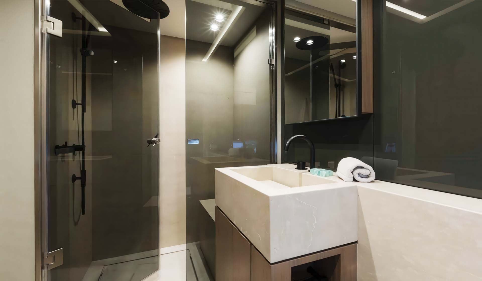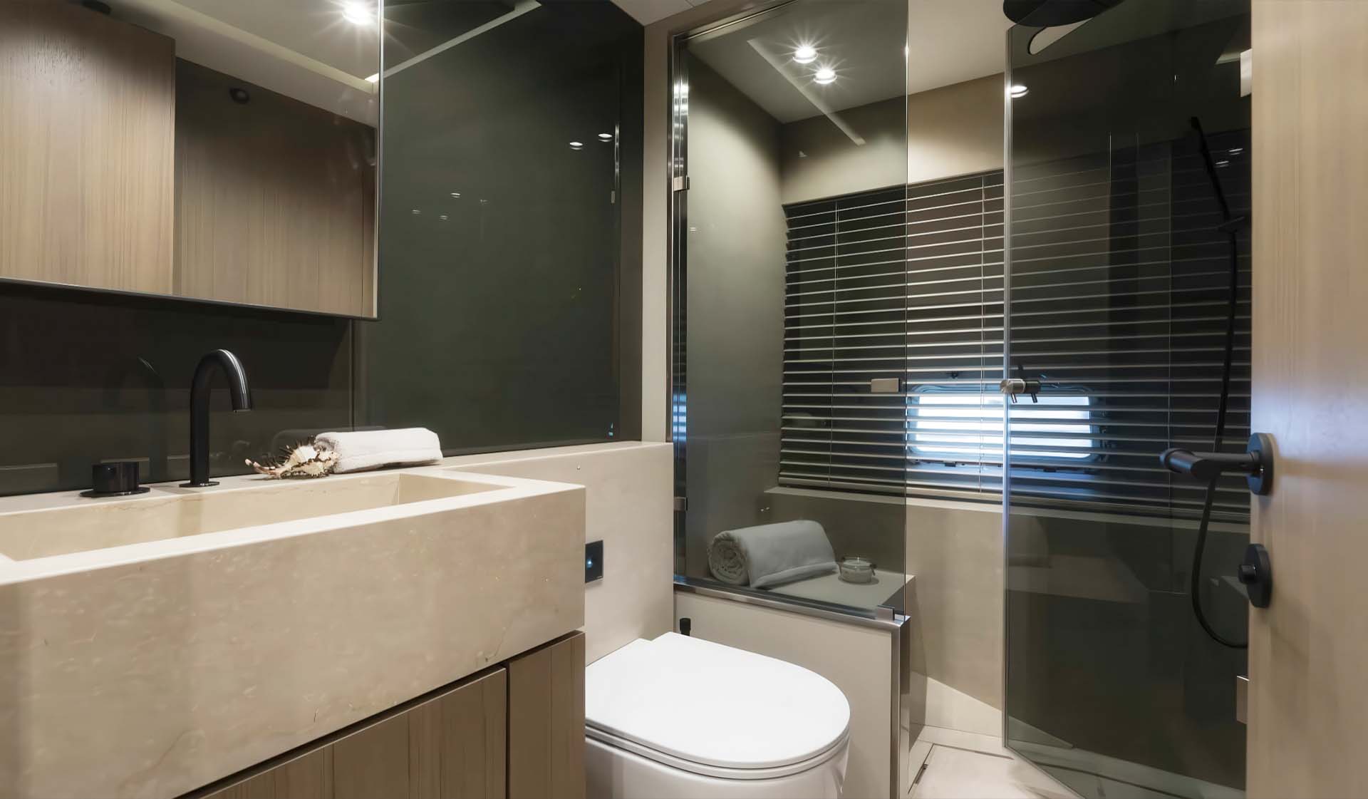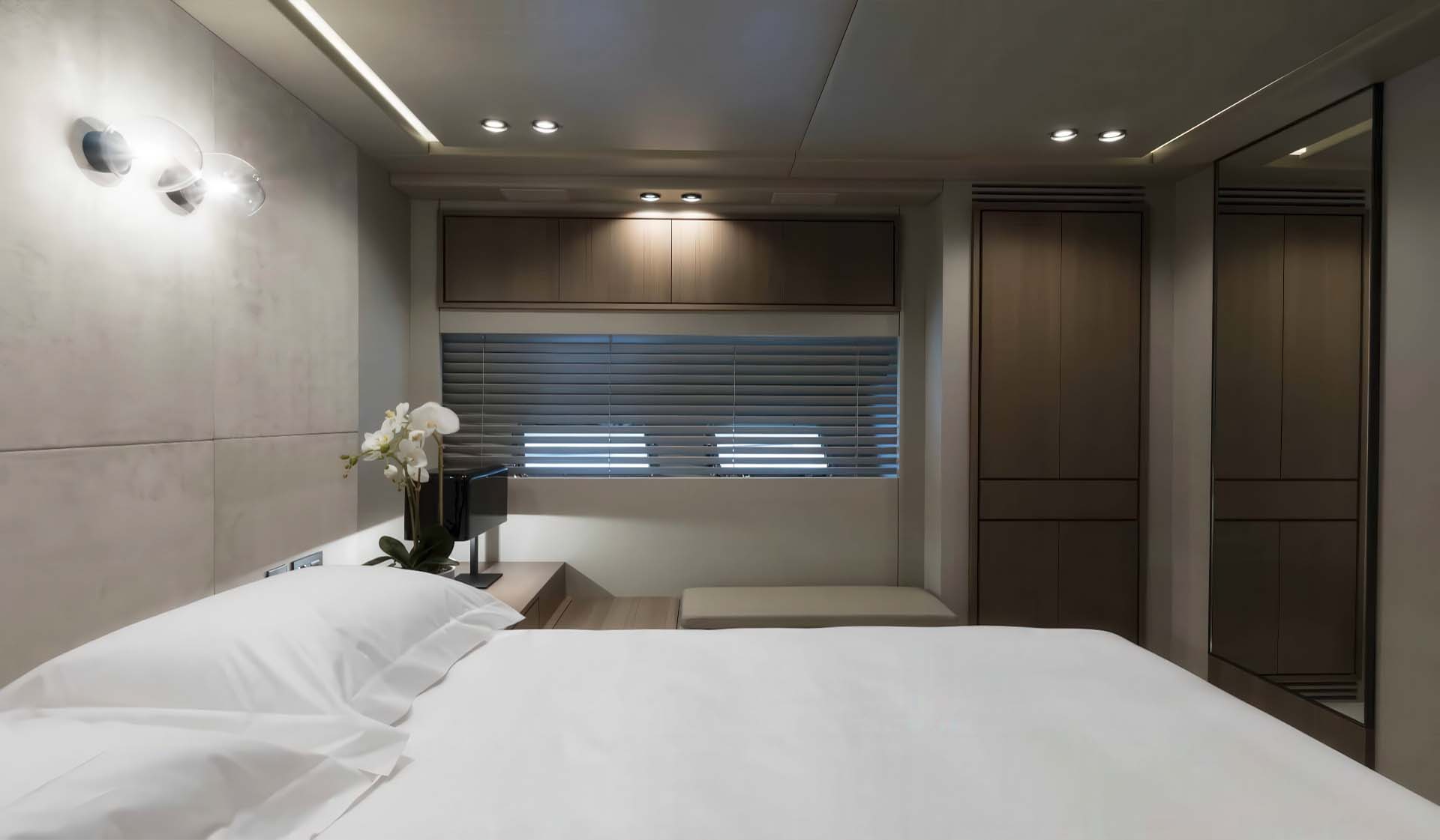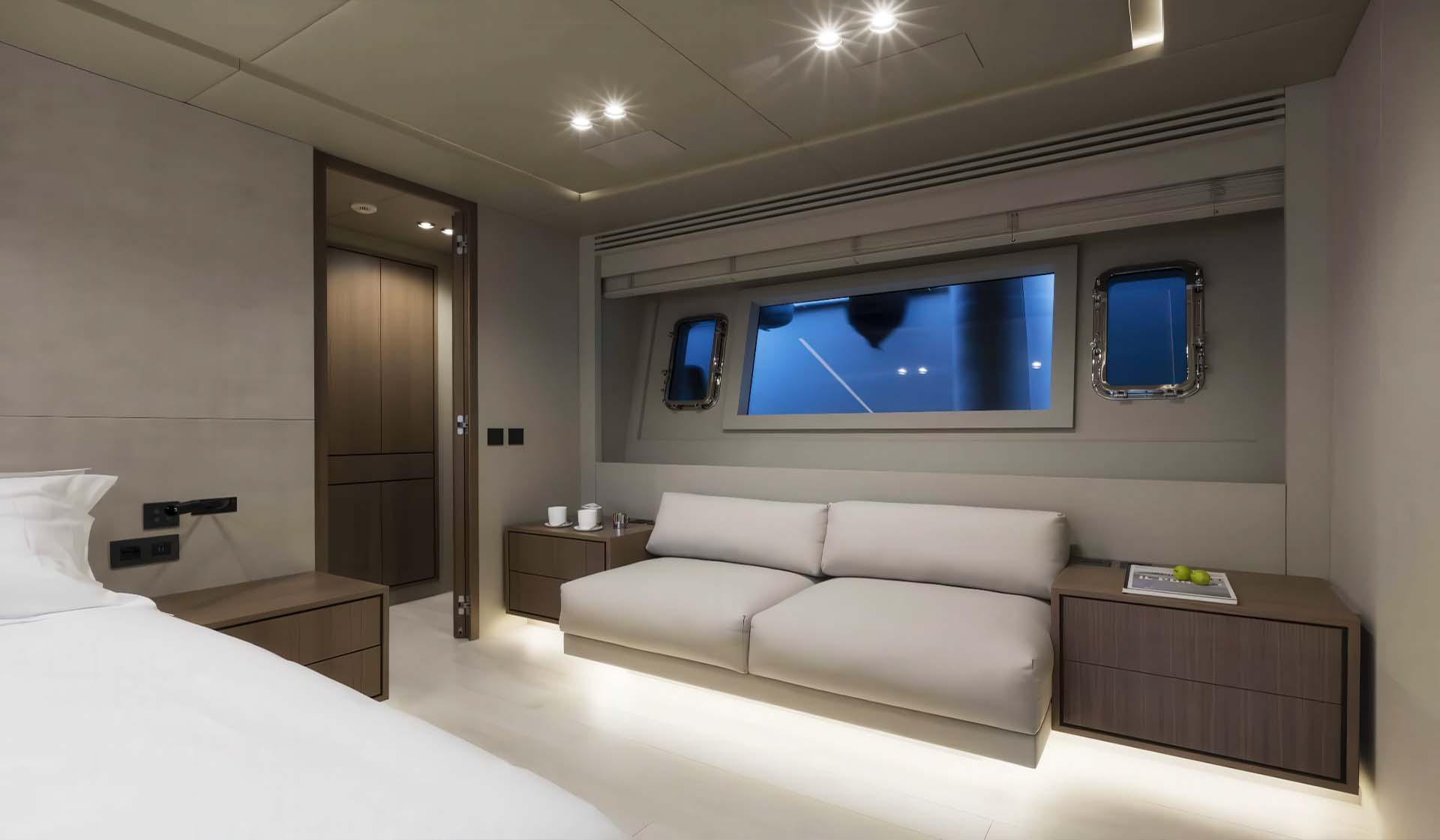 Ступив на борт Mangusta 110, вы попадаете в мир современной роскоши. Просторный салон открытой планировки наполнен естественным светом, благодаря панорамным окнам увеличенного размера, а элегантный декор создает спокойную и расслабляющую атмосферу.