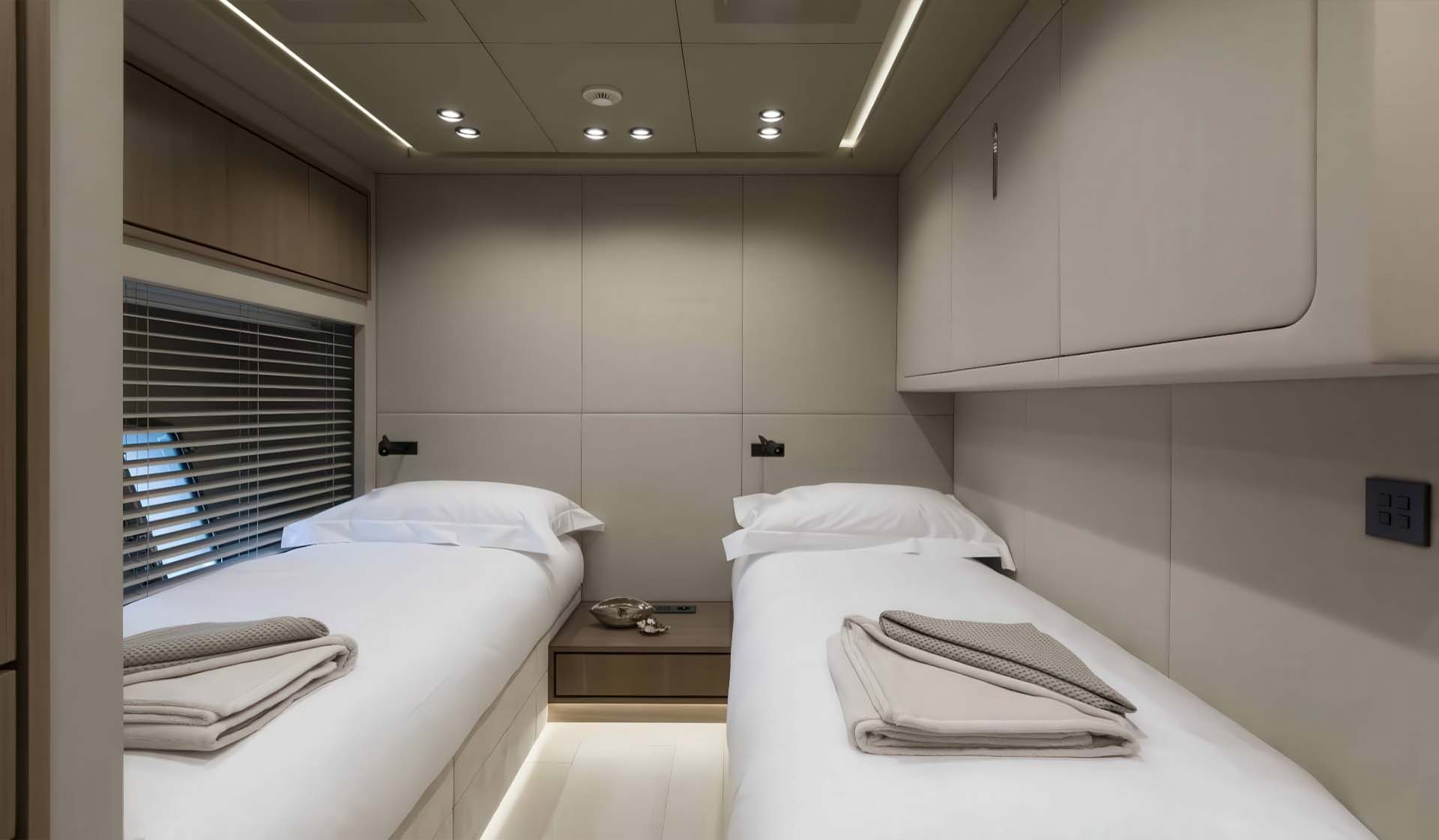 • 2 твин-каюты, обе с возможностью трансформации и дополнительными кроватями Pullman для максимальной гибкости размещения