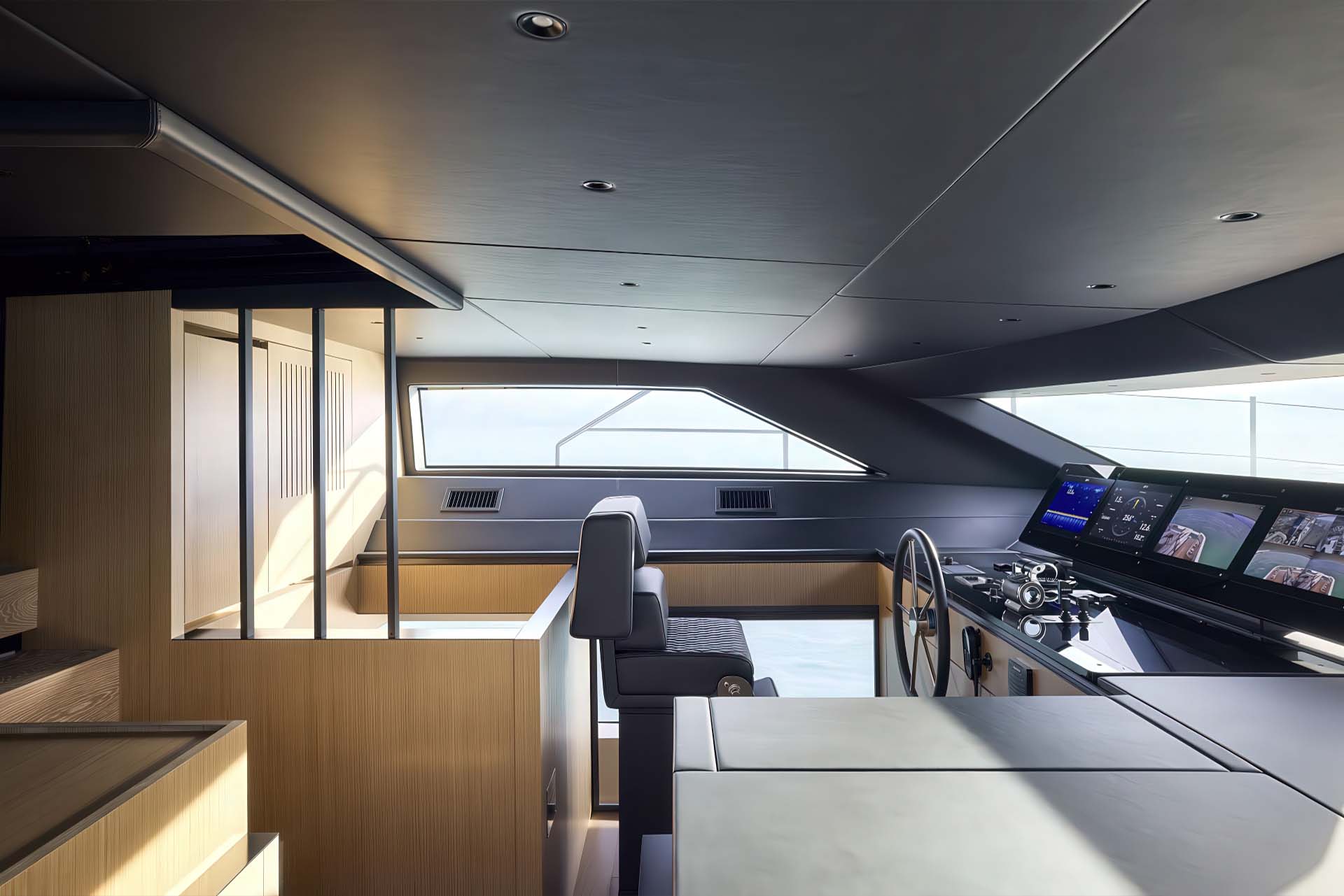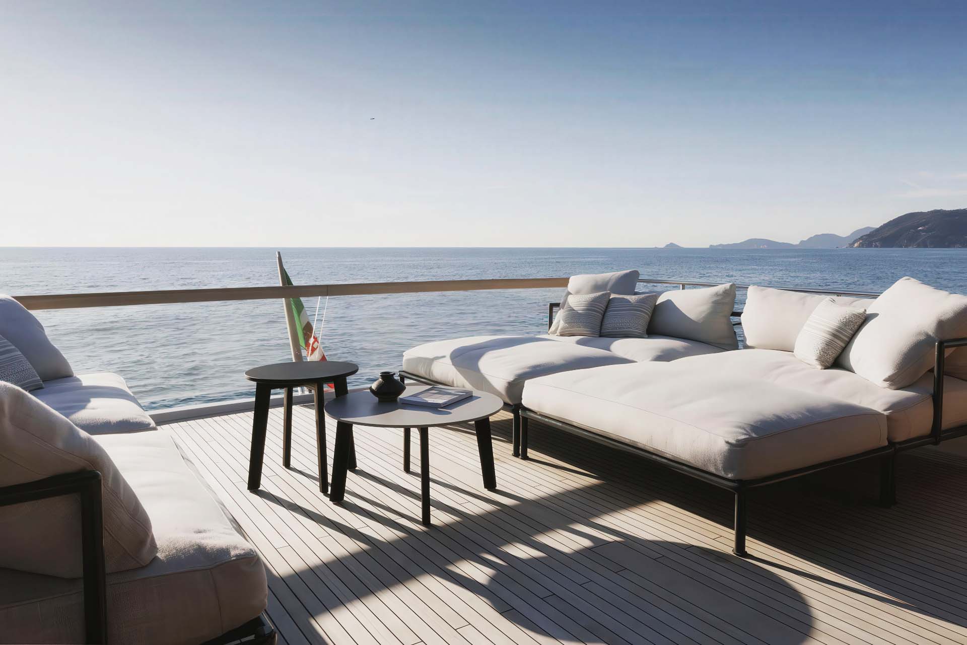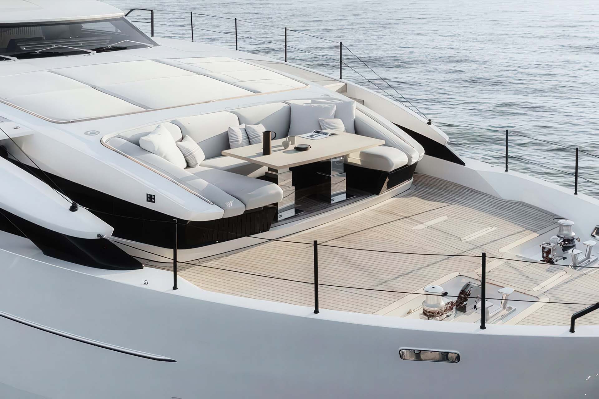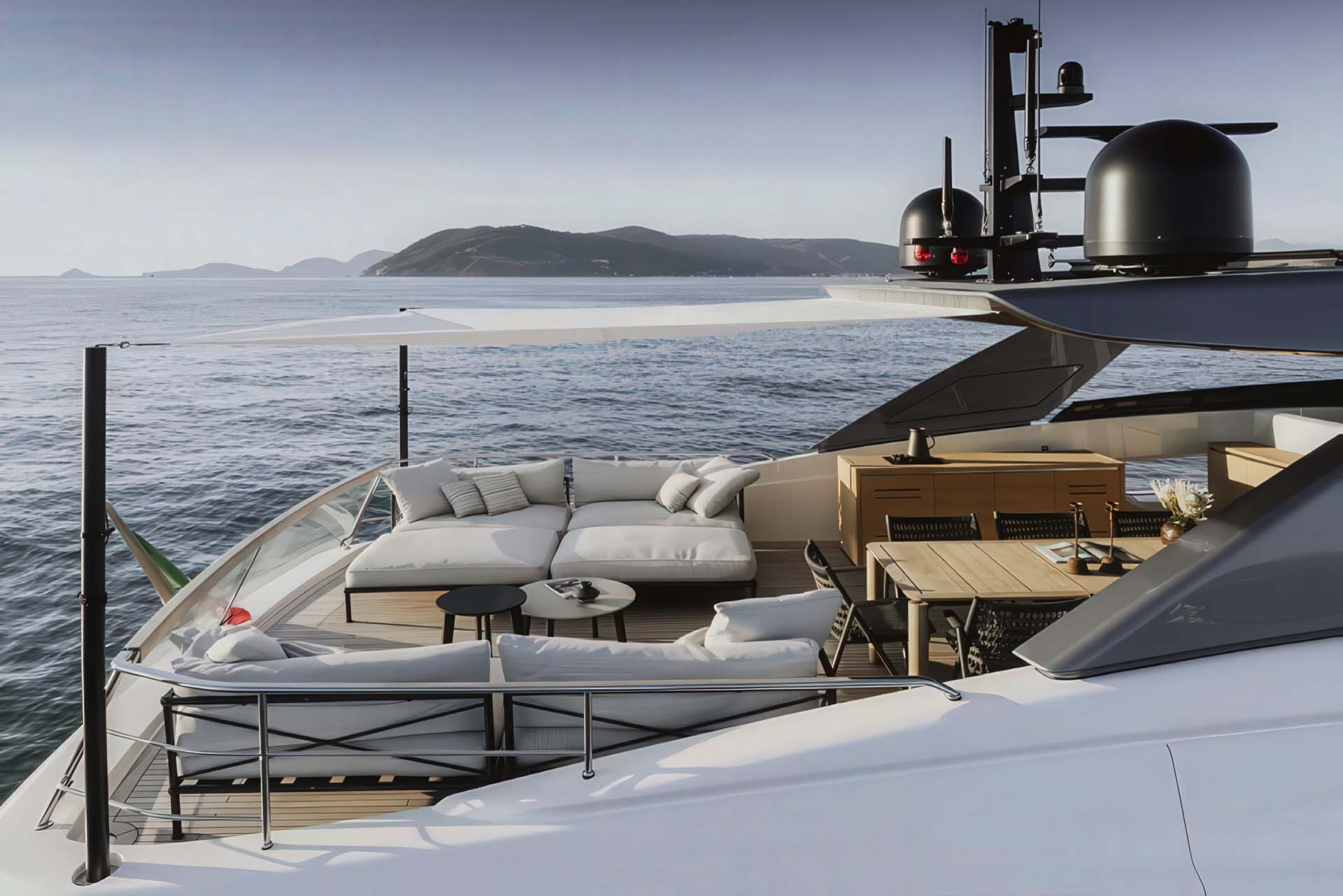 Яхта Sanlorenzo SL86A предлагает расширенные внешние зоны с двумя просторными площадками для принятия солнечных ванн - одна в носовой части, другая органично интегрирована в надстройку. Просторный флайбридж обеспечивает дополнительные возможности для отдыха и развлечений на свежем воздухе.