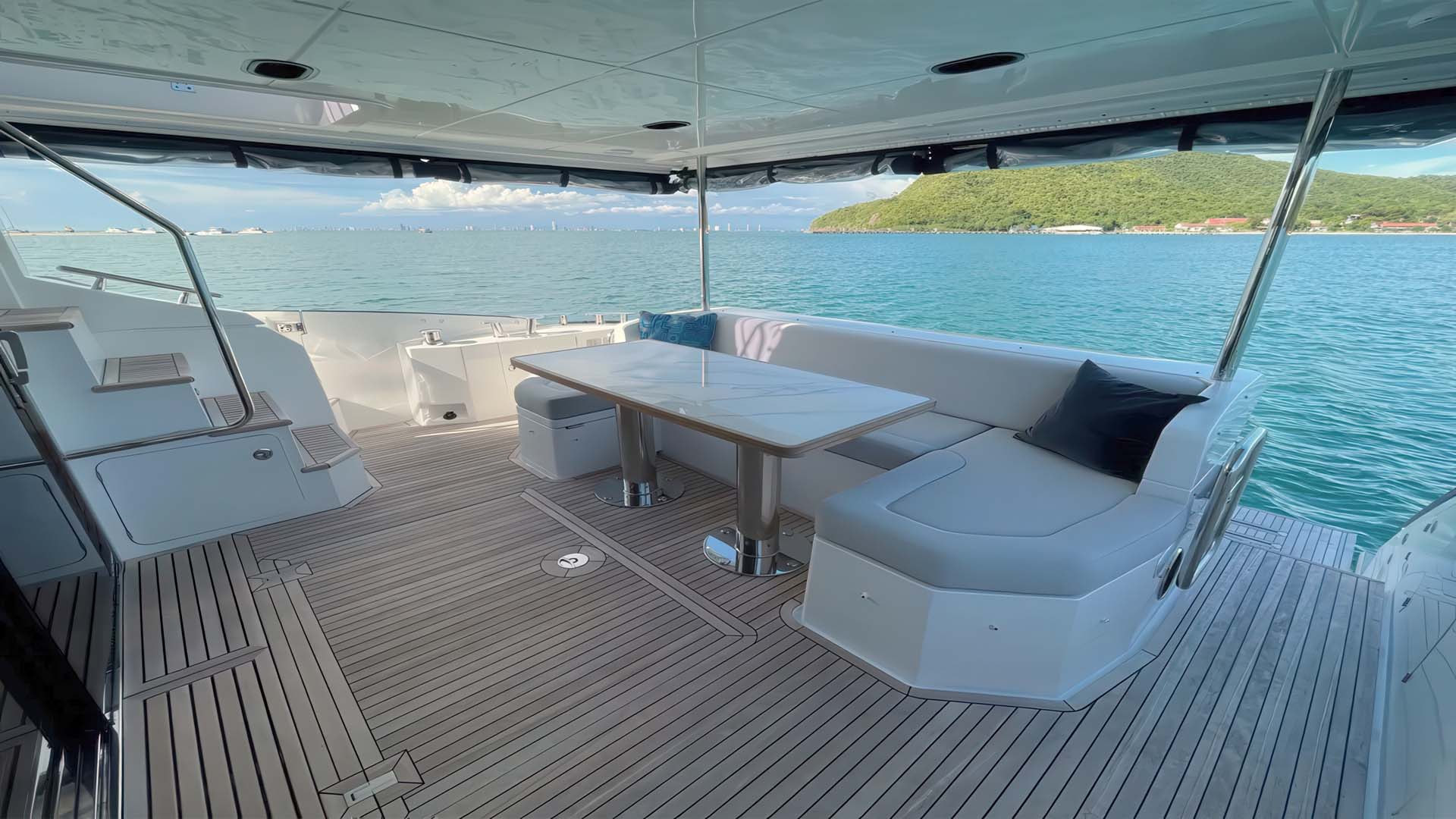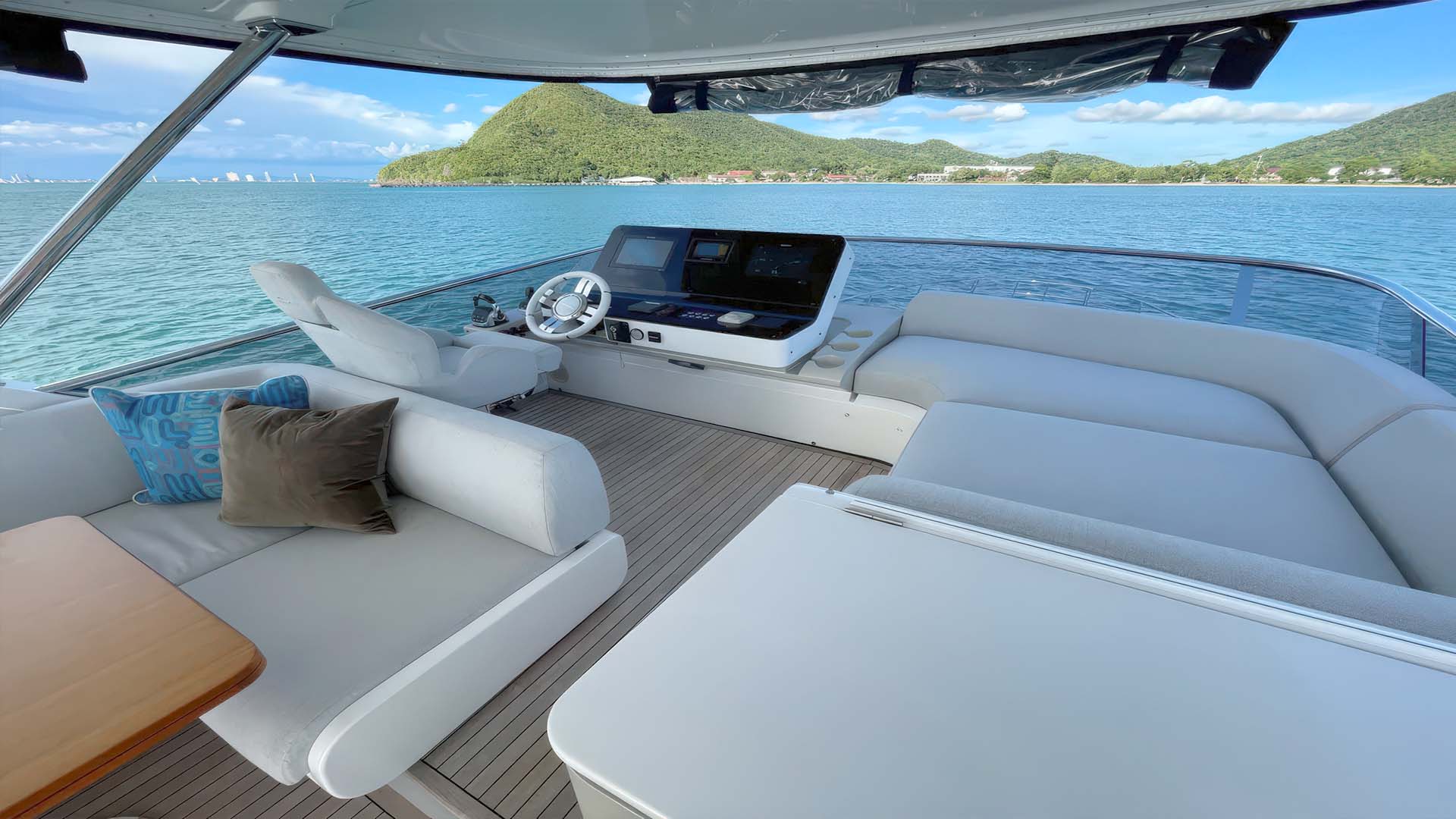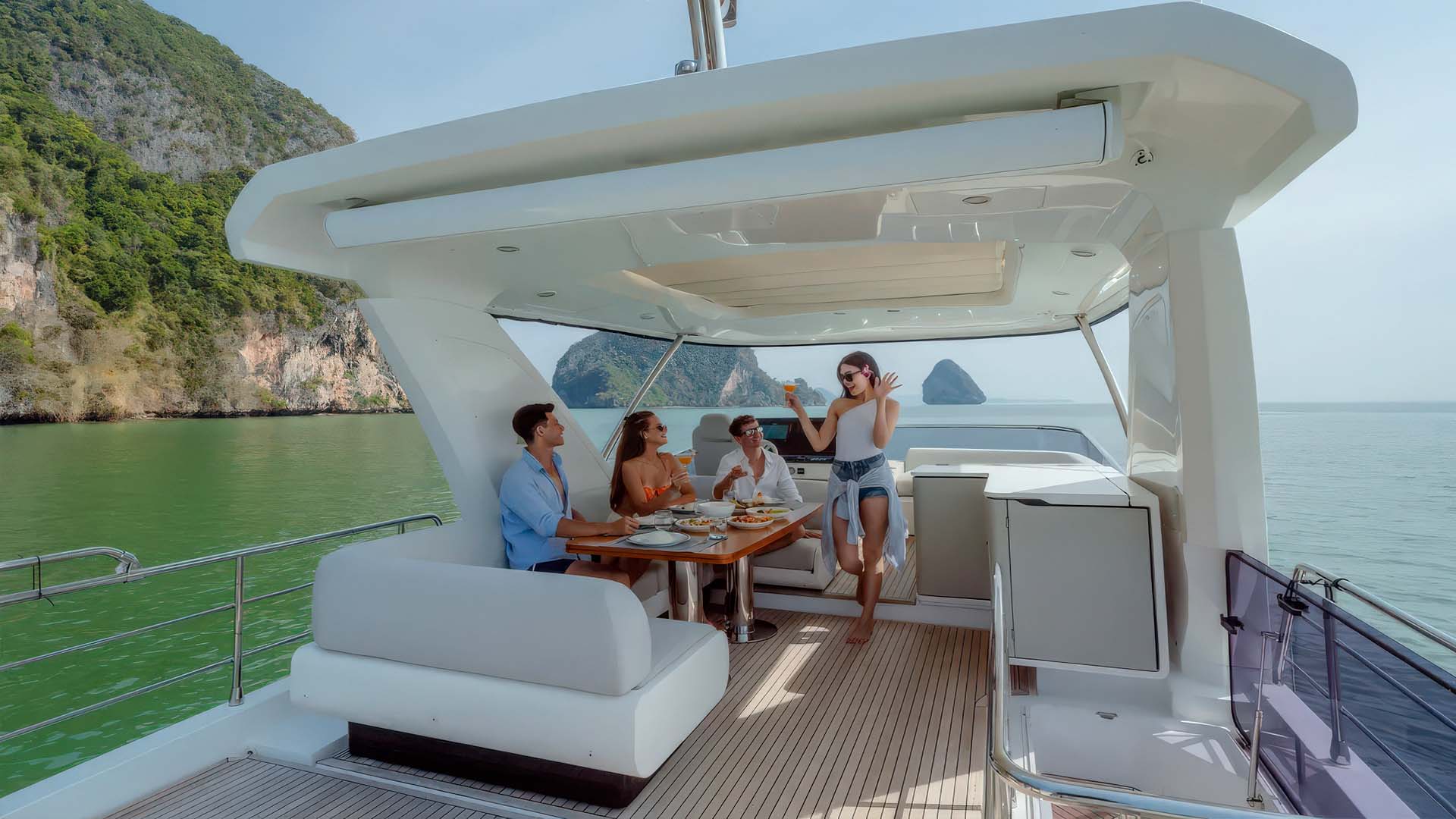Флайбридж - это место для утреннего кофе, когда Пхукет только просыпается, и вы первые видите, как солнце окрашивает море в оттенки розового. Это место для дневных коктейлей, когда яхта стоит на якоре у острова Рача Яй, а вокруг только бирюзовая вода и белый песок. Это место для закатных ужинов, когда небо превращается в палитру художника, а воздух пахнет морем и свободой.