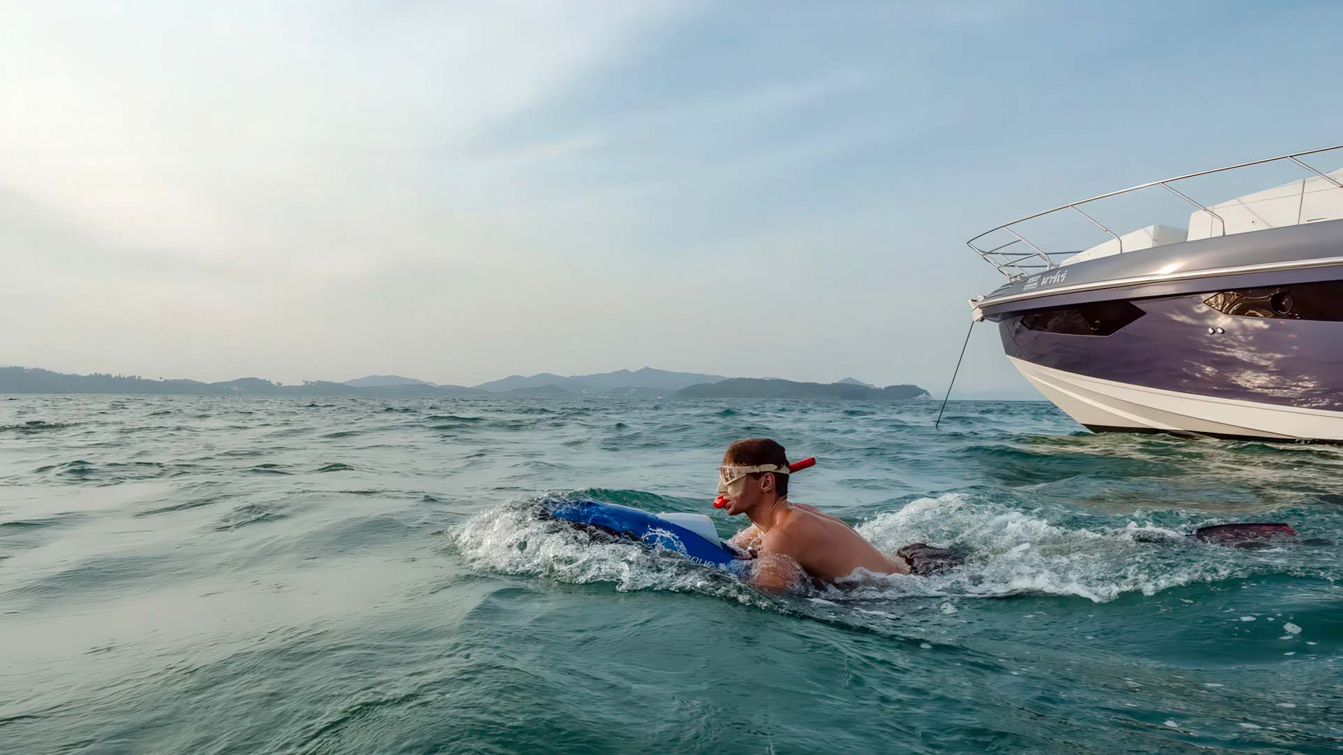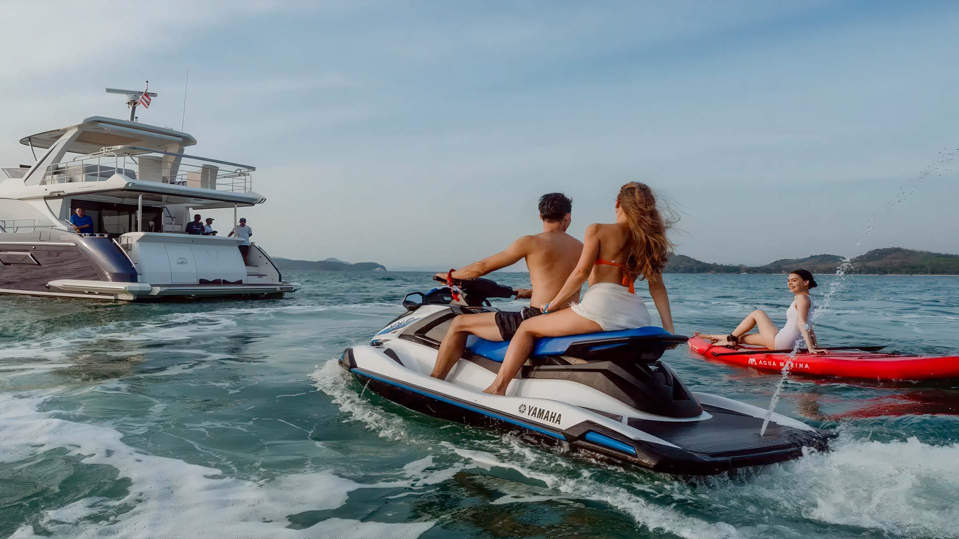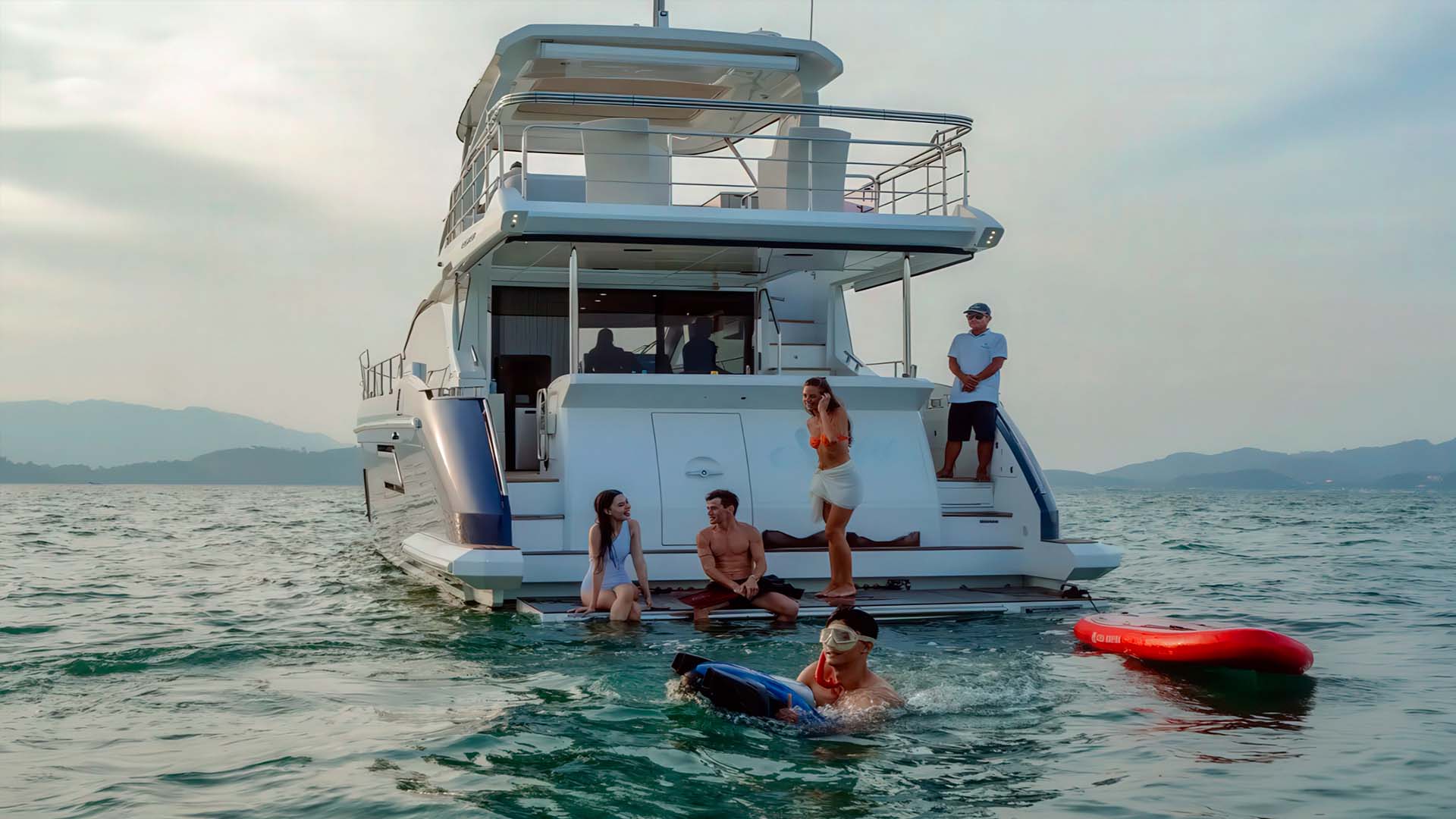 Флайбридж - это место для утреннего кофе, когда Пхукет только просыпается, и вы первые видите, как солнце окрашивает море в оттенки розового. Это место для дневных коктейлей, когда яхта стоит на якоре у острова Рача Яй, а вокруг только бирюзовая вода и белый песок. Это место для закатных ужинов, когда небо превращается в палитру художника, а воздух пахнет морем и свободой.