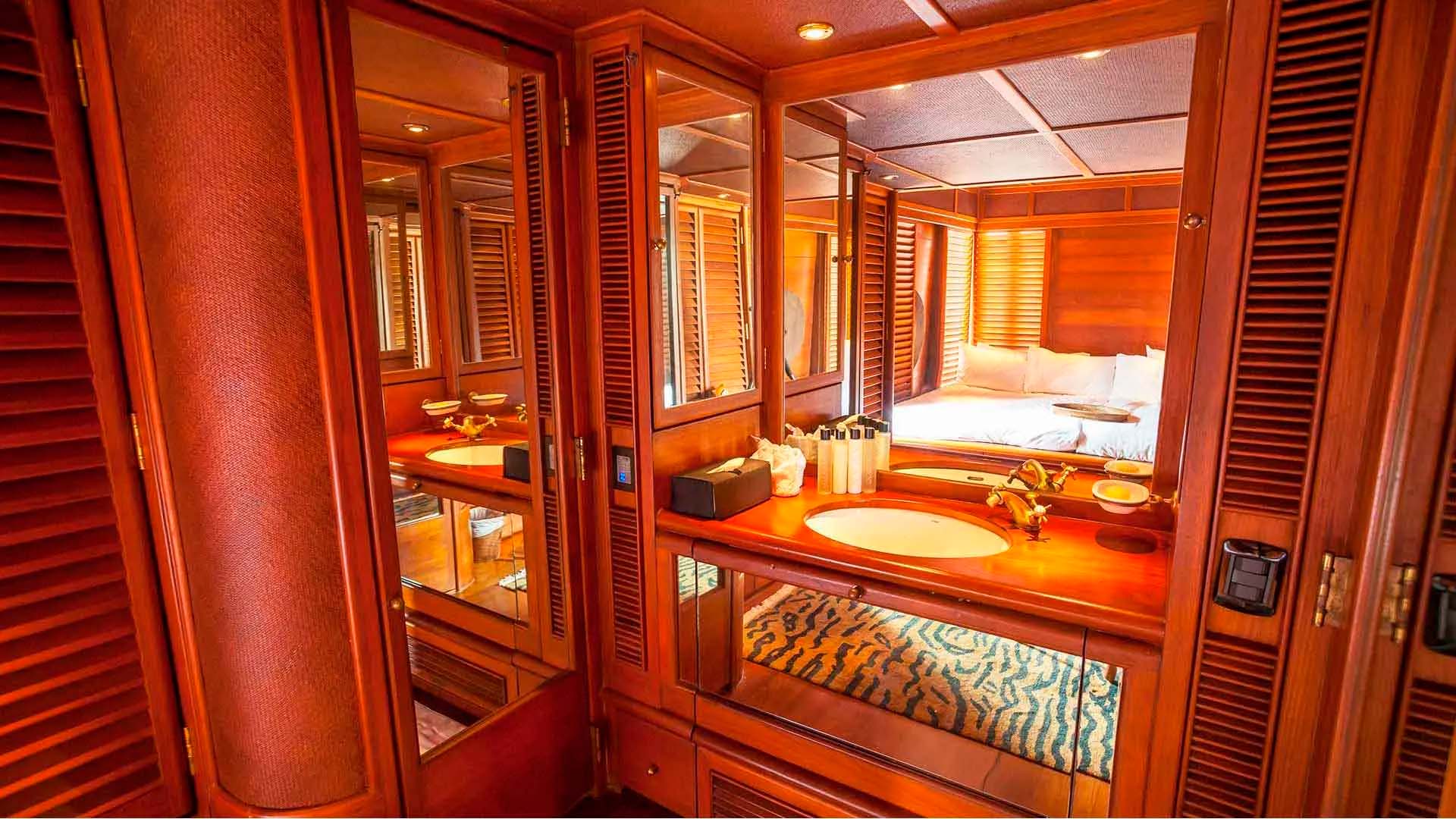 В 1994 году, когда большинство яхт строились по западным лекалам из стеклопластика и алюминия, Эд Таттл сделал ставку на древние традиции тайских мастеров-кораблестроителей. Каждая доска Maha Bhetra вырезана и подогнана вручную, каждое соединение, результат многовековых знаний, передаваемых от отца к сыну. 90-футовый корпус из массивного бирманского тика не просто красив, он дышит историей, издаёт неповторимый аромат древесины и создаёт ту самую атмосферу, которую невозможно имитировать на современных судах.
