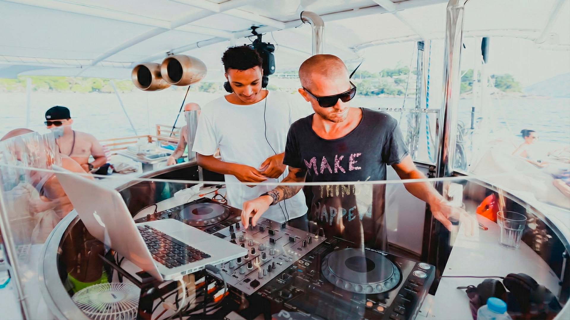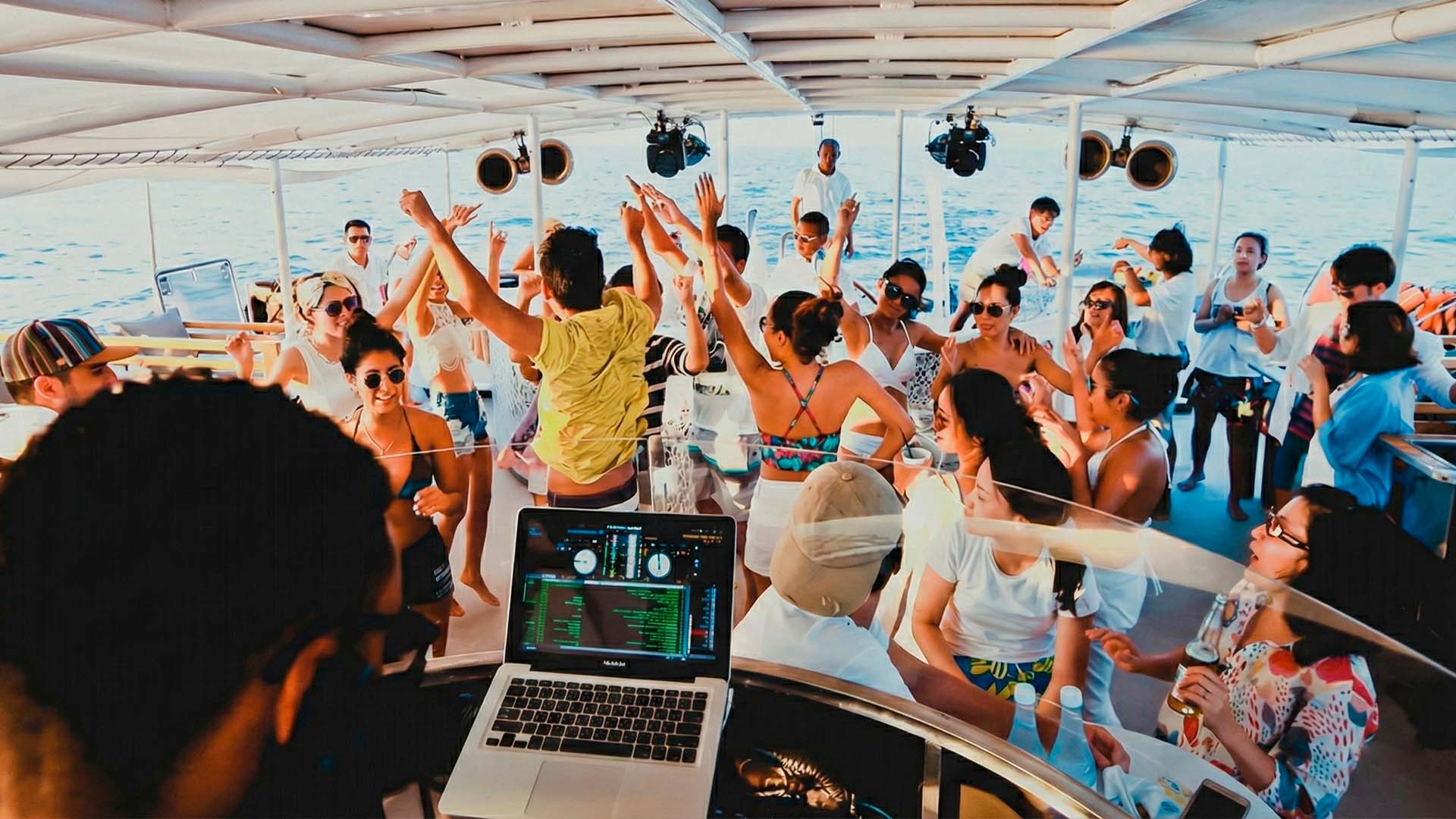 В отличие от большинства яхт, где музыка - это просто плейлист, Party Catamaran 74ft включает в базовую стоимость профессионального DJ. Это не просто человек с плейлистом, это опытный специалист, который чувствует энергию гостей, умеет разогреть публику и поддерживать нужный темп всю вечеринку. Диджей-пульт расположен в центральной зоне катамарана, откуда видна вся палуба. Это позволяет диджею видеть реакцию гостей и моментально адаптировать музыкальную программу под настроение компании.