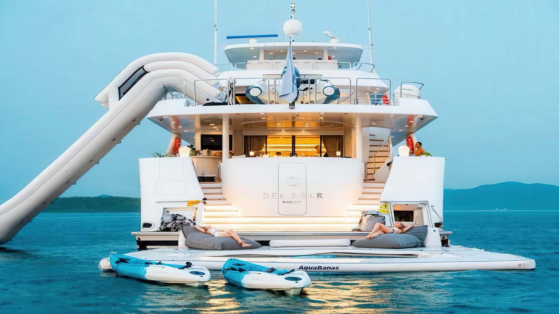 Гигантская водная горка - надувная водная горка, устанавливаемая на якорной стоянке, превращают Sea Bear в аквапарк. Дети (и взрослые) могут часами развлекаться, соскальзывая с горки прямо в Андаманское море