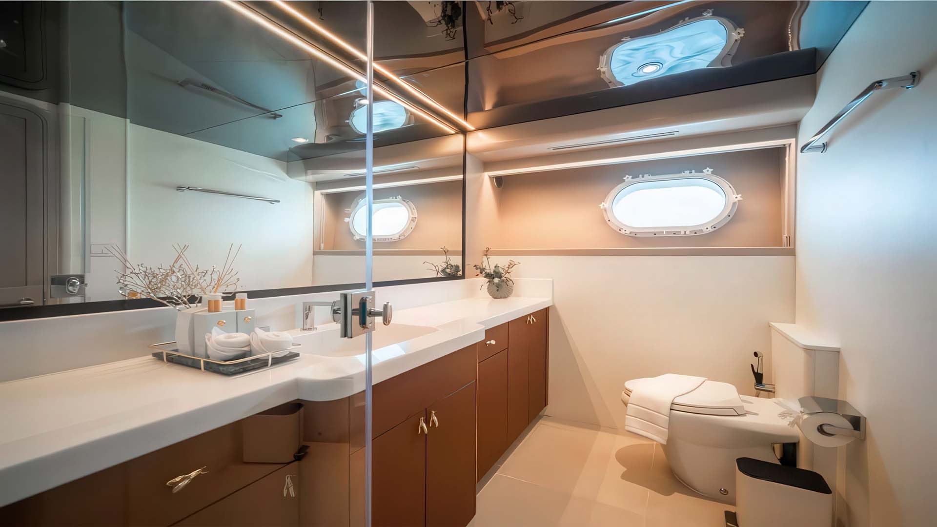 Все пять кают оборудованы системой индивидуального контроля климата, что критически важно для тропических широт и развлекательную систему.