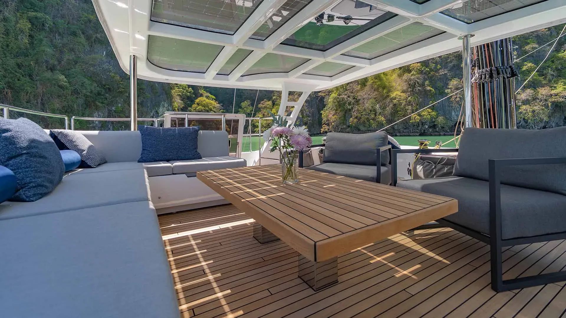 Два электромотора по 70 кВт, обеспечивают до шести часов бесшумного хода на чистой солнечной энергии. Вы можете провести целый день, исследуя острова Пханг Нга или Пхи-Пхи, не издав ни звука и не оставив углеродного следа. Это яхтинг с чистой совестью - роскошь, которая не стоит планете ничего.