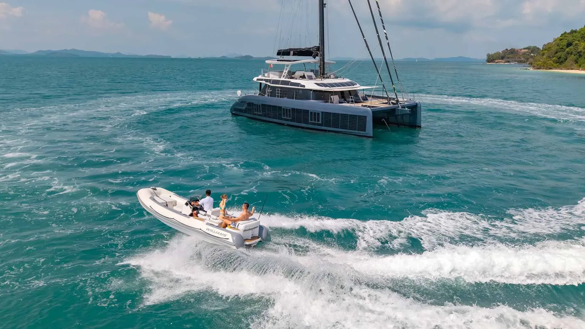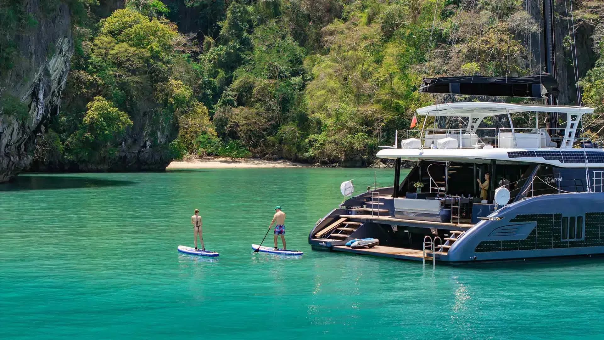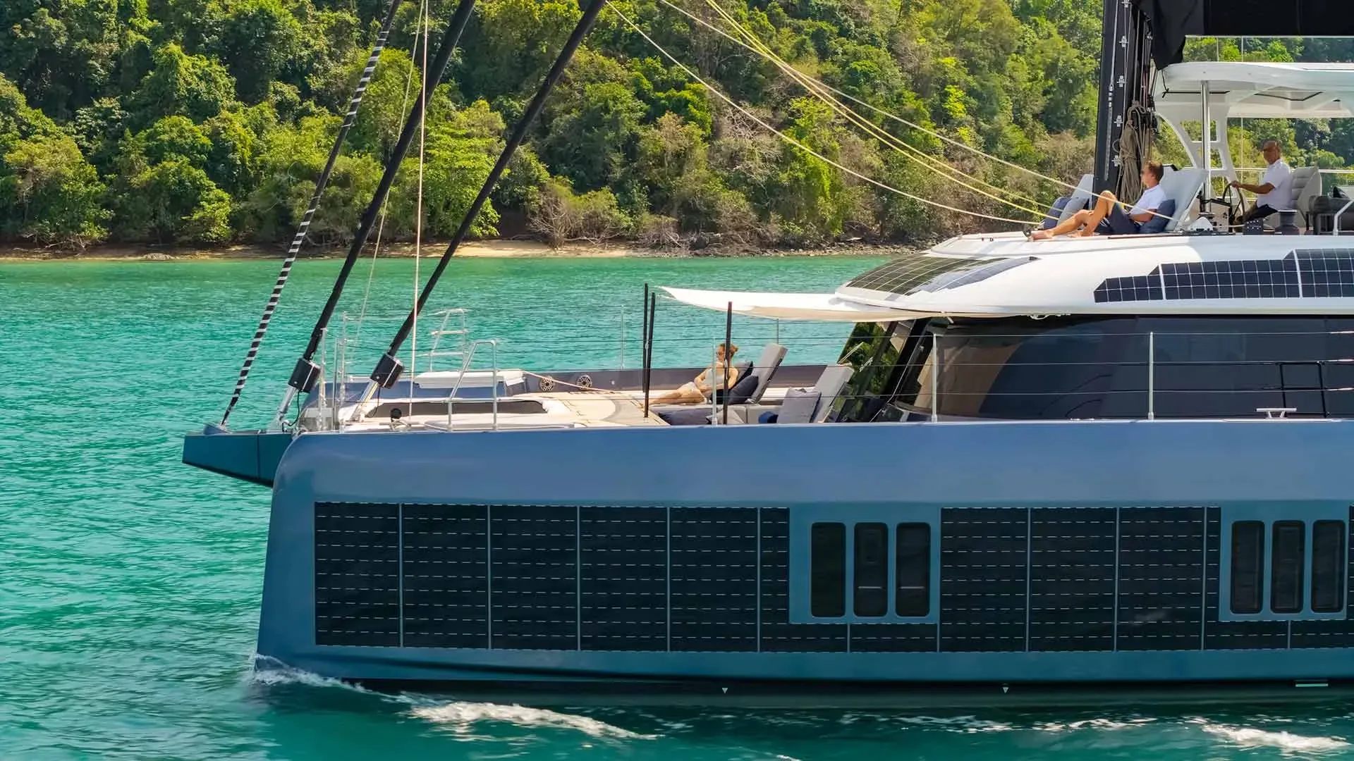 E-Motion - это не просто катамаран, это манифест новой эры морских путешествий. Представьте: вы скользите по изумрудной глади Андаманского моря в абсолютной тишине, слышите только шёпот волн и крики тропических птиц, никакого звука работающих двигателей, никаких вибраций, никаких выхлопов, только вы, бескрайнее море и ощущение единения с природой.