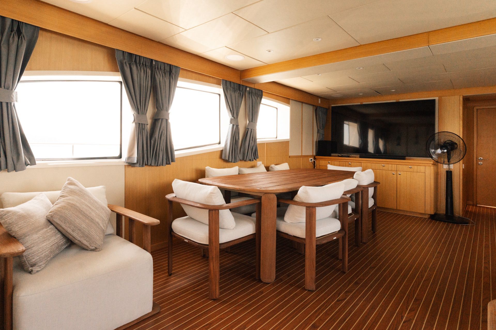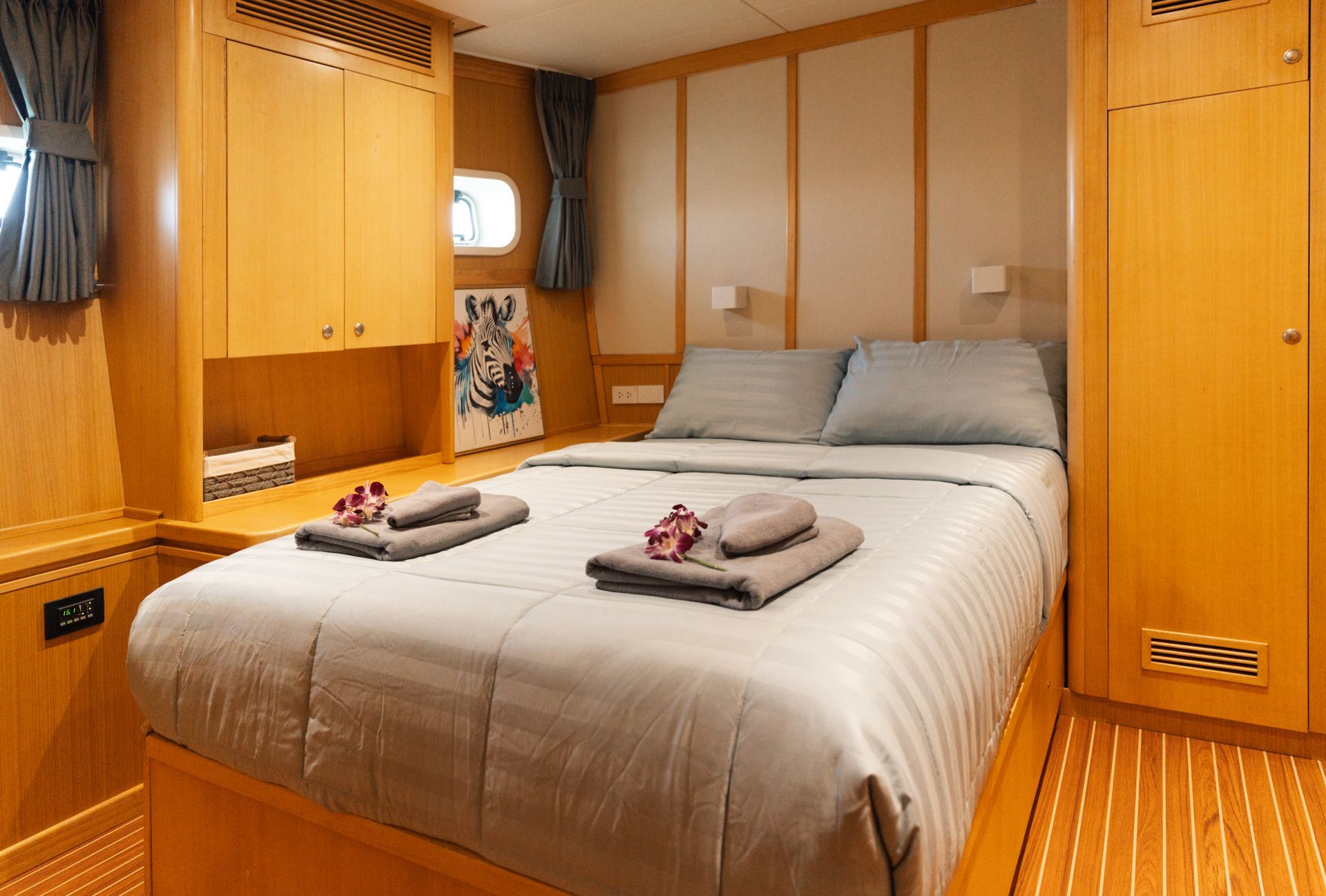 Многодневные чартеры, предусматривают размещение для 8 гостей, в роскошных условиях: две master-каюты с кроватями King-size, одна VIP-каюта с кроватью Queen и одна каюта Twin с двумя раздельными спальными местами. Каждая каюта отличается продуманным дизайном и современными удобствами, создающими атмосферу пятизвездочного отеля.