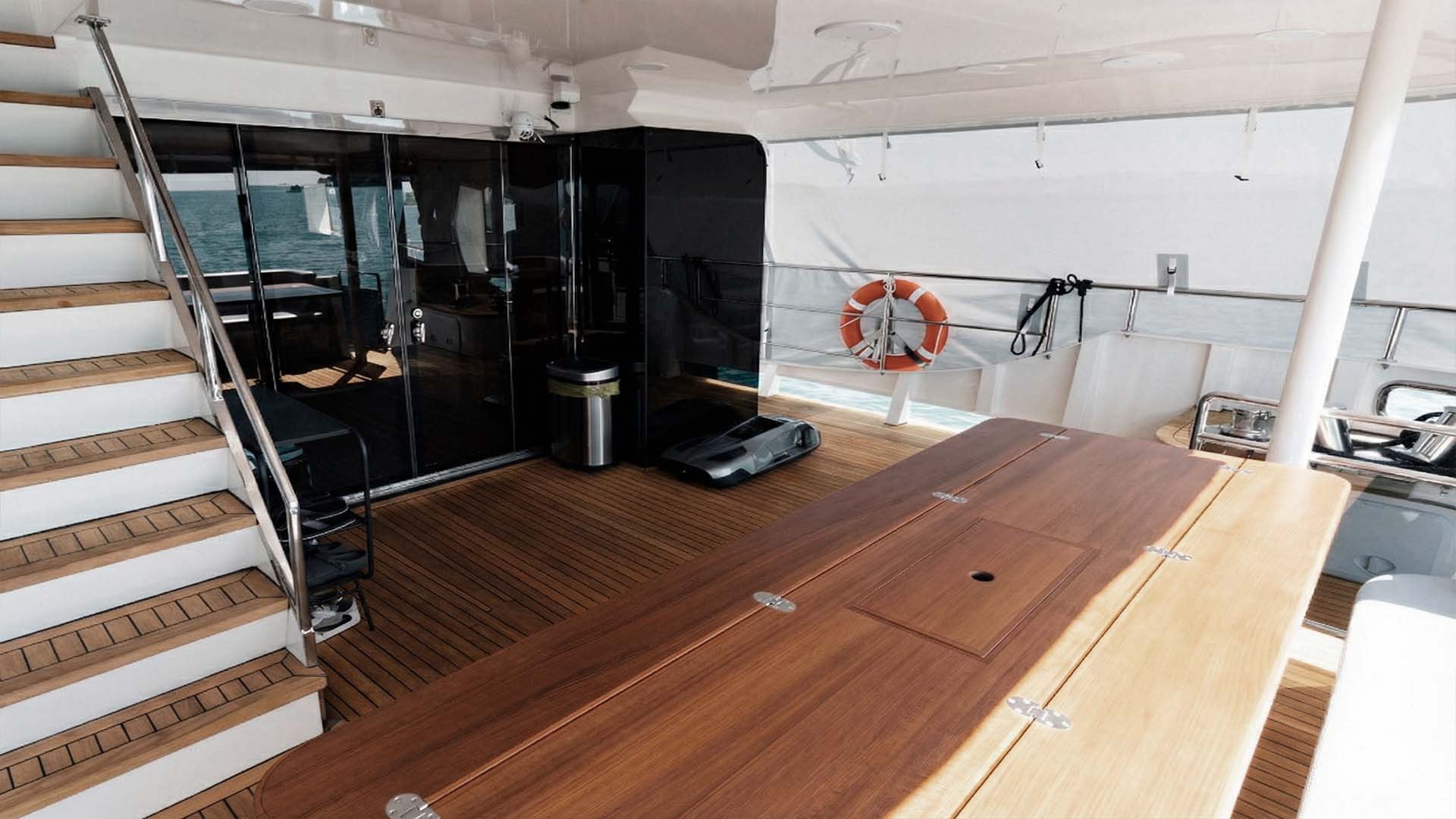 Солнечные панели на Т-топе, обеспечивают экологичное энергоснабжение, позволяя яхте находиться на якоре в полной тишине, без использования генераторов. Наслаждайтесь кристальной тишиной в уединенных бухтах, где единственные звуки, это плеск волн и пение тропических птиц.
