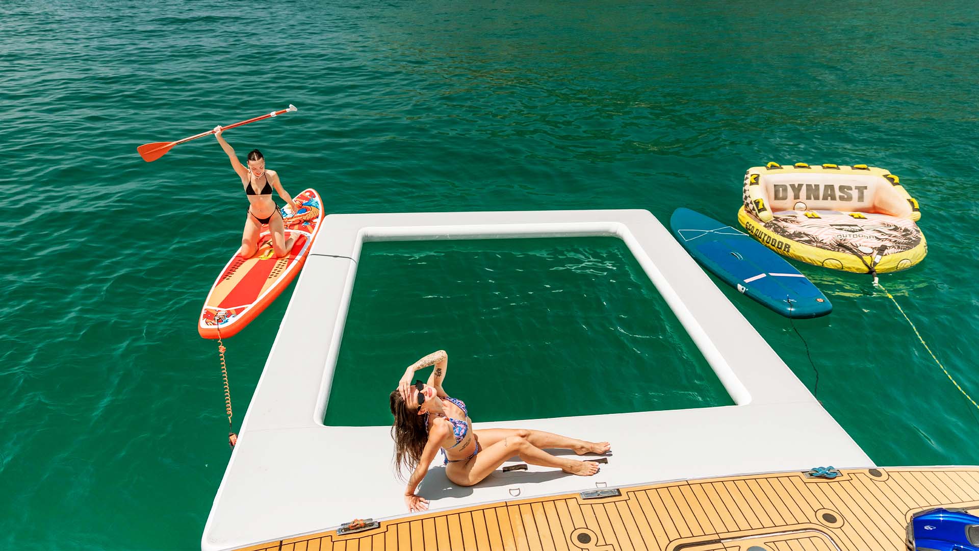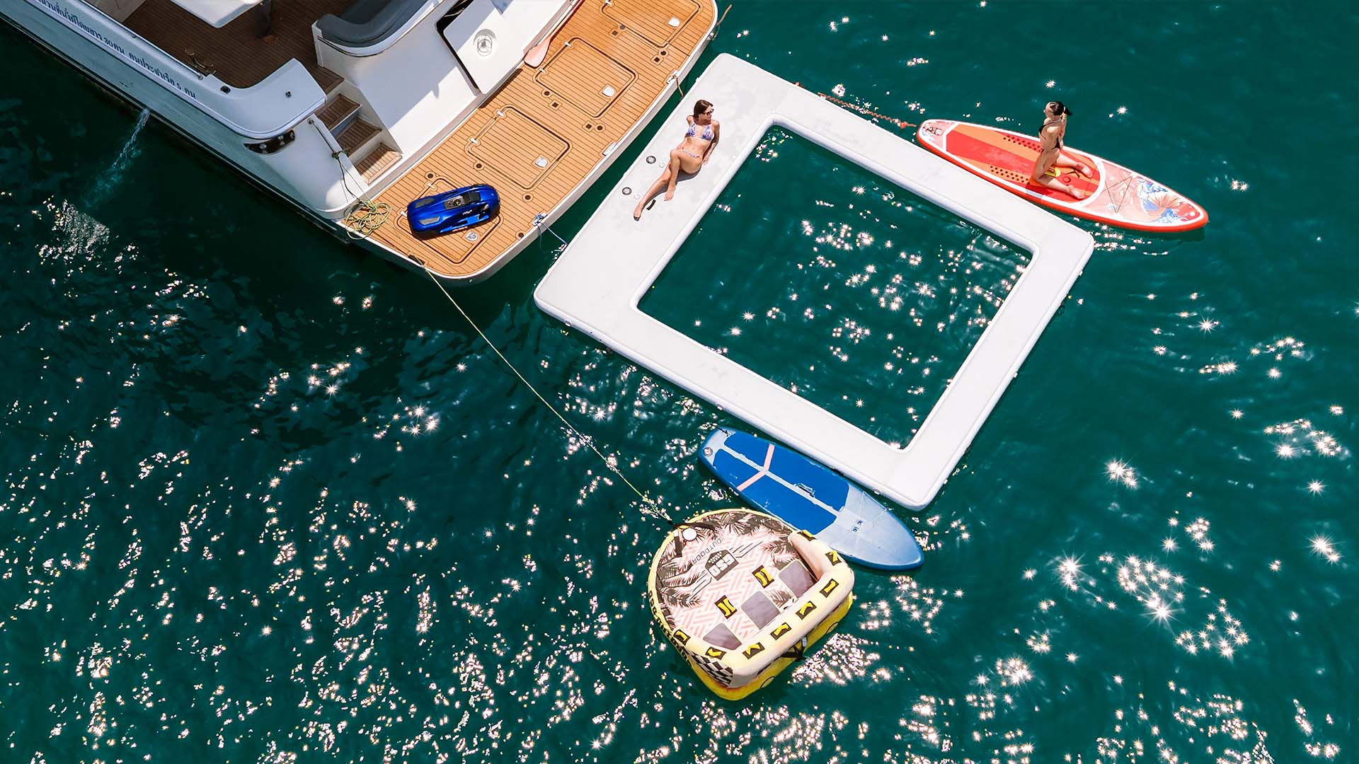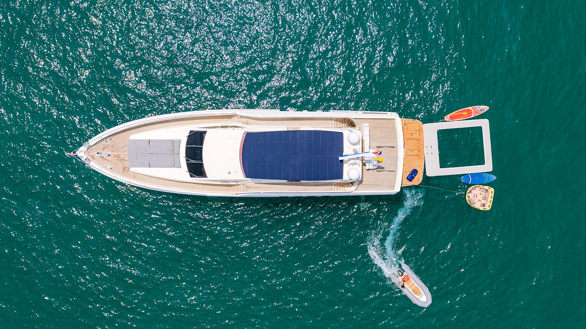 Среди других удобств яхты - большая терраса на флайбридже, на которой можно загорать и наслаждаться красивыми видами, а также просторная палуба, где можно провести время на свежем воздухе и насладиться бризом морского ветра.