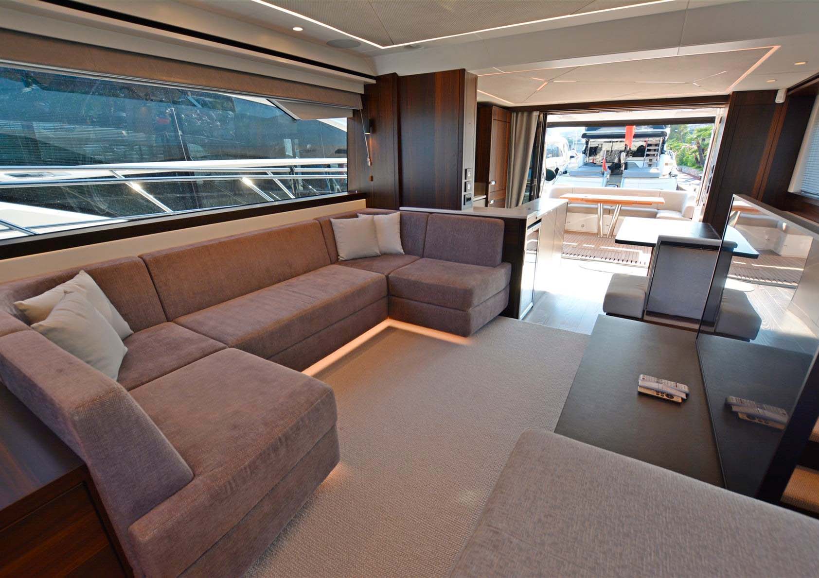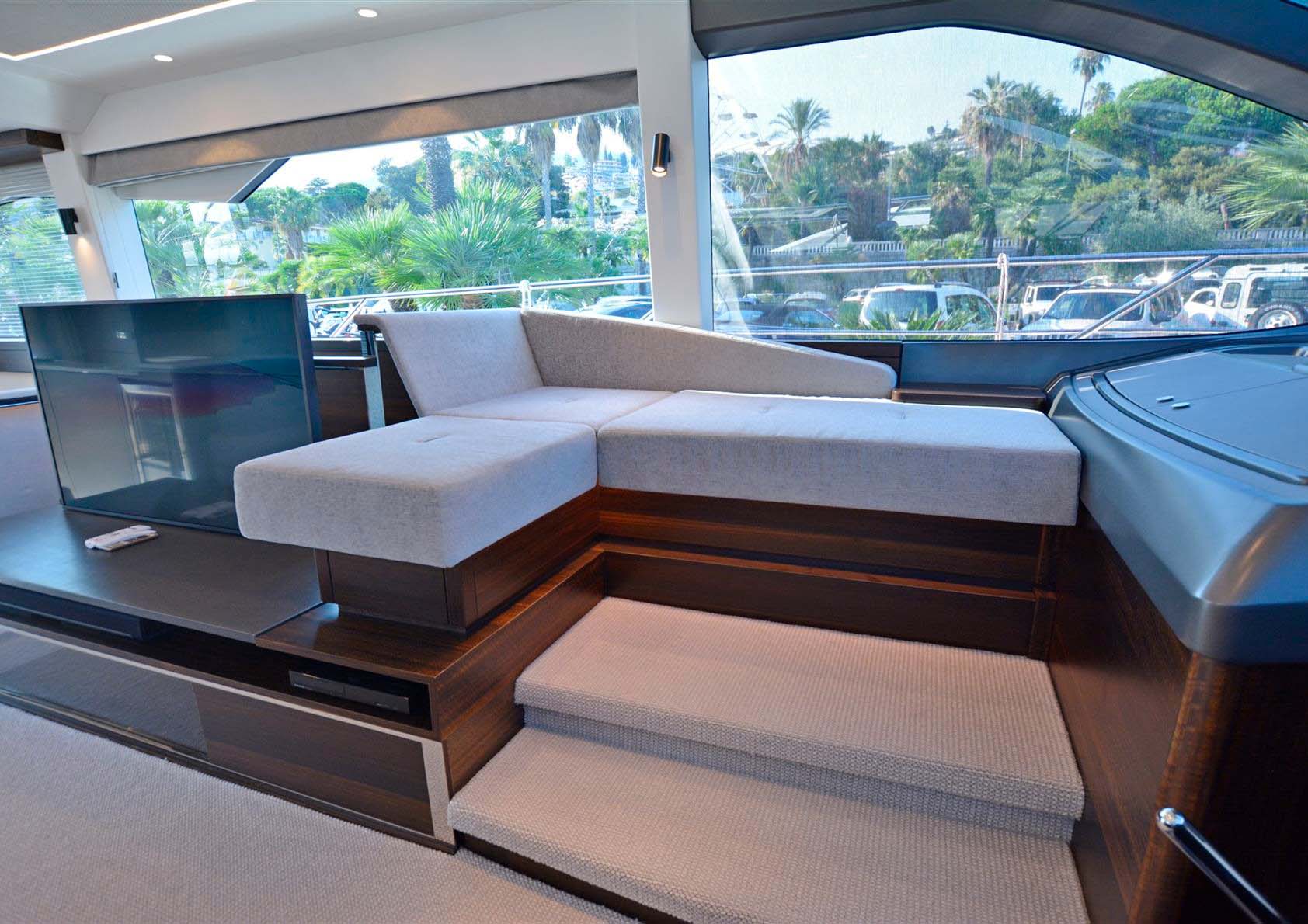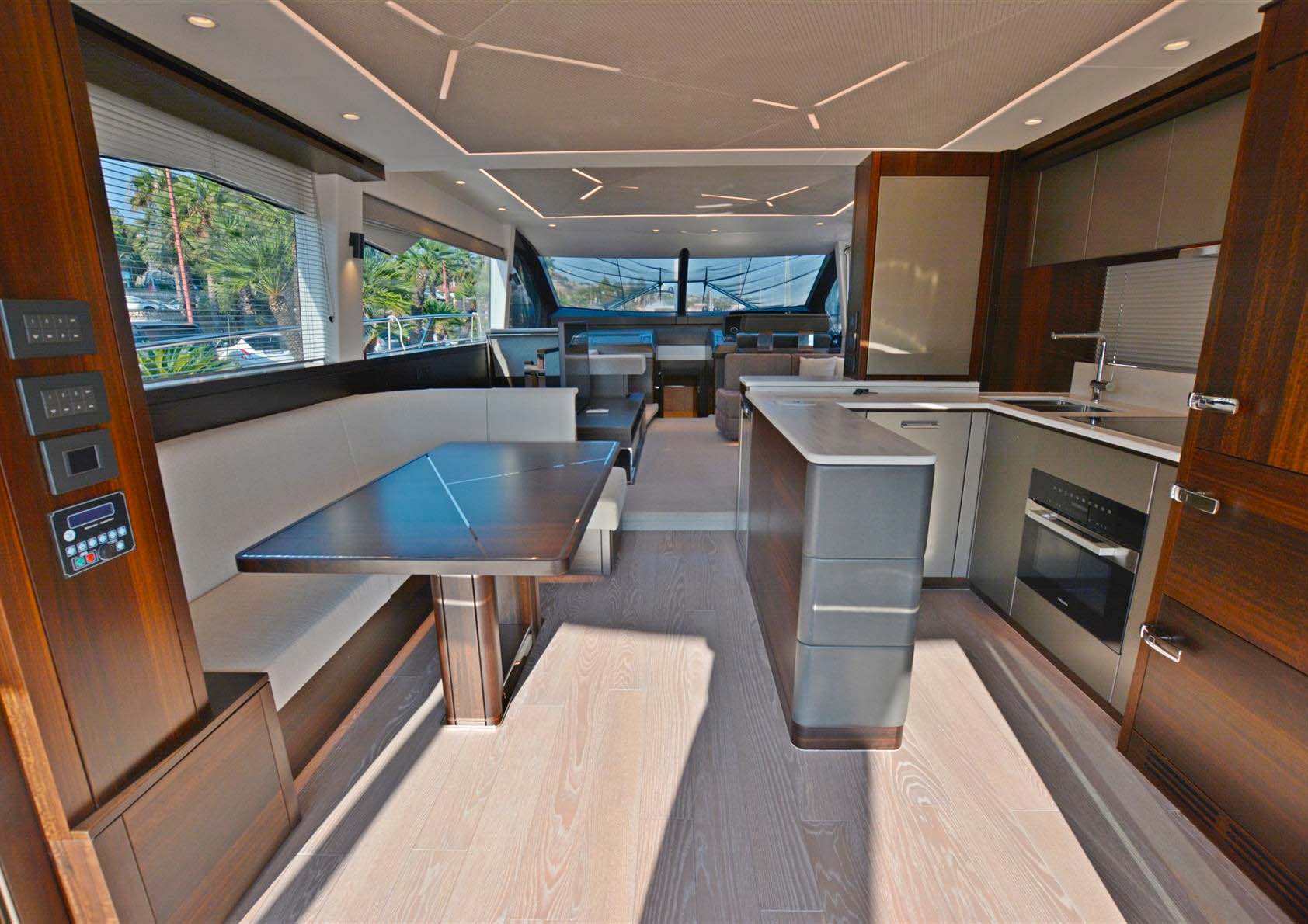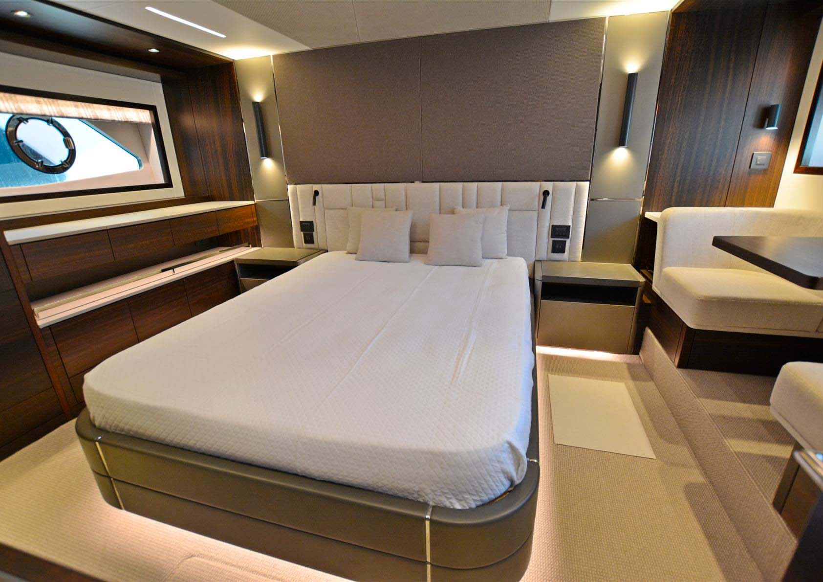 Великолепная гостиная раскрывается перед вами через раздвижные двери. Кухня, оборудованная по последнему слову техники, обеденная зона оформлена с изыском и украшена красивым столом из натурального дерева. В уютном лаунж-уголке вы найдете огромный диван с телевизионной тумбой и шезлонгом. На нижней палубе располагается роскошная мастер-каюта с отдельным входом. Еще 3 гостевые каюты: VIP-каюта расположена носу судна с отдельной ванной и 2 гостевые каюты находятся на правом и левом борту, рядом роскошная ванная комната для гостей. Для экипажа, на корме яхты, каюта на двух человек с отдельной ванной комнатой.